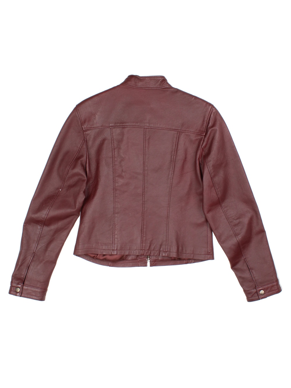 Y2K Funnel Neck Leather Jacket (Size XXS)
