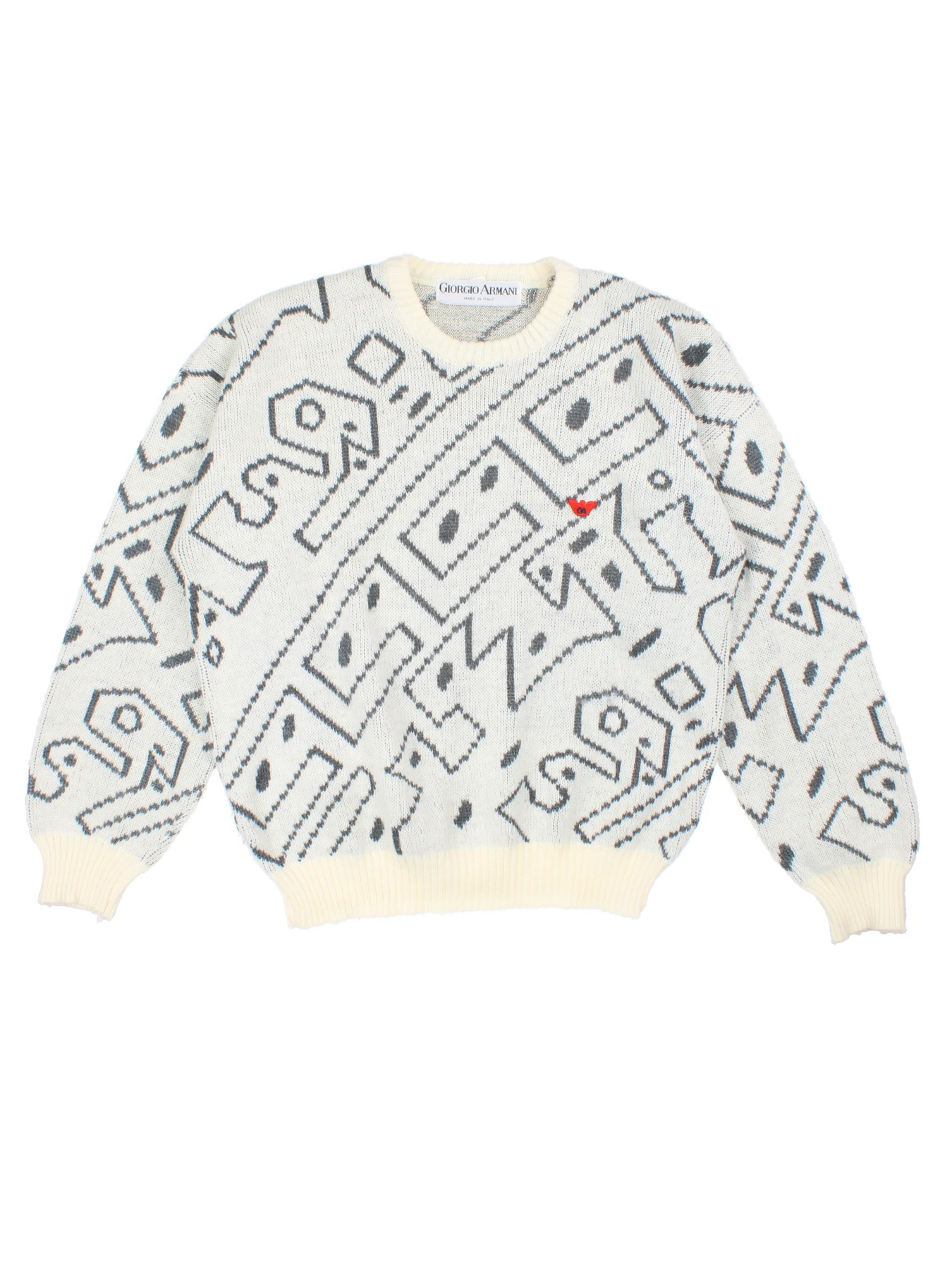 80er Jahre Armani Pullover mit abstraktem Muster (Größe L)