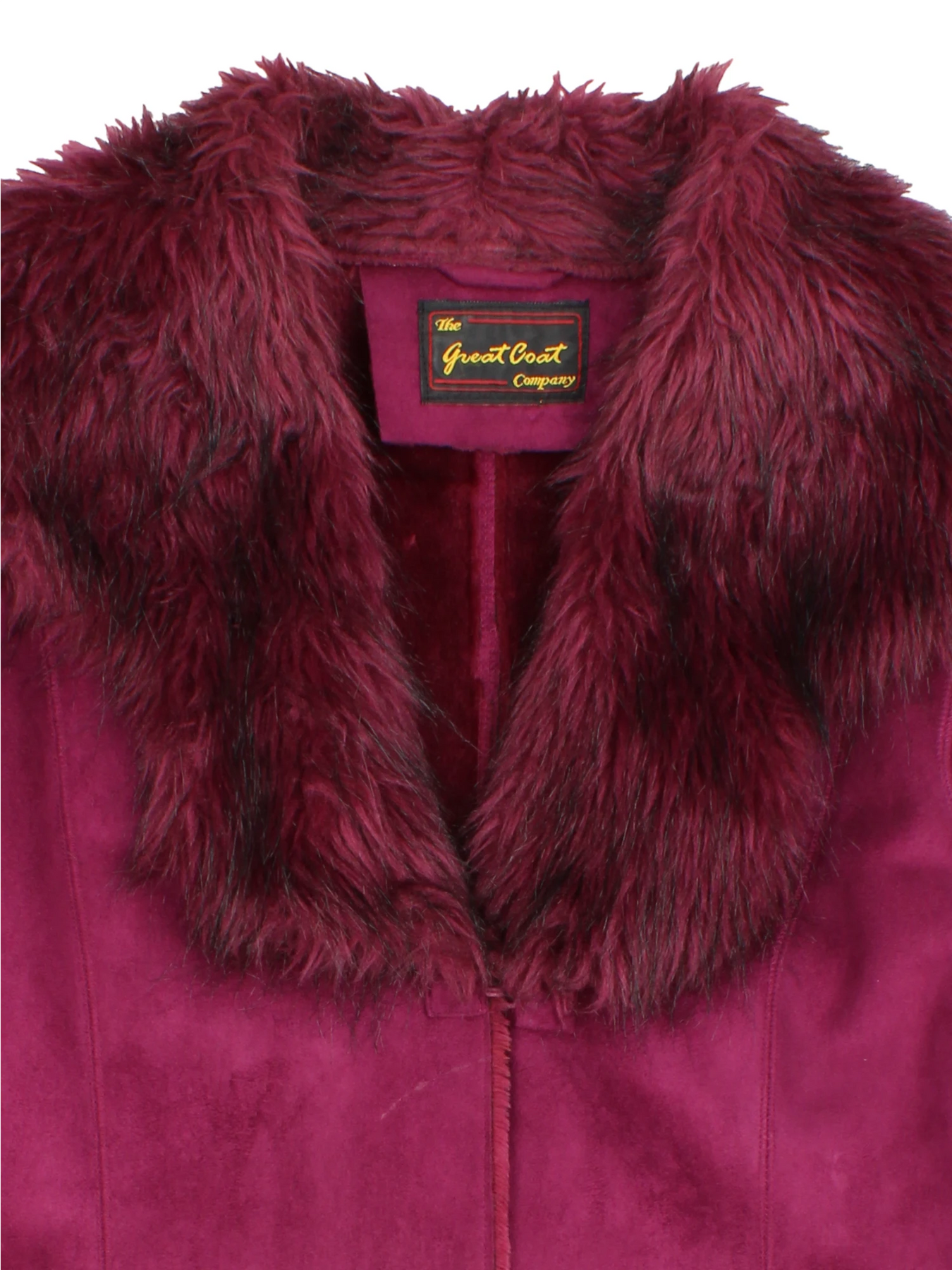 Elevate your outerwear collection with this unique Afghan-style coat from The Great Coat Company, crafted in a captivating burgundy hue. The plush faux fur collar and sleeve trims channel 90's trend energy, offering a bold statement look with undeniable retro flair. Perfect for layering over dresses or jumpers, this coat ensures both comfort and sophistication for casual outings and special occasions alike. Complete your vintage-inspired ensemble with this one-of-a-kind piece and enjoy a blend of nostalgia and contemporary fashion.