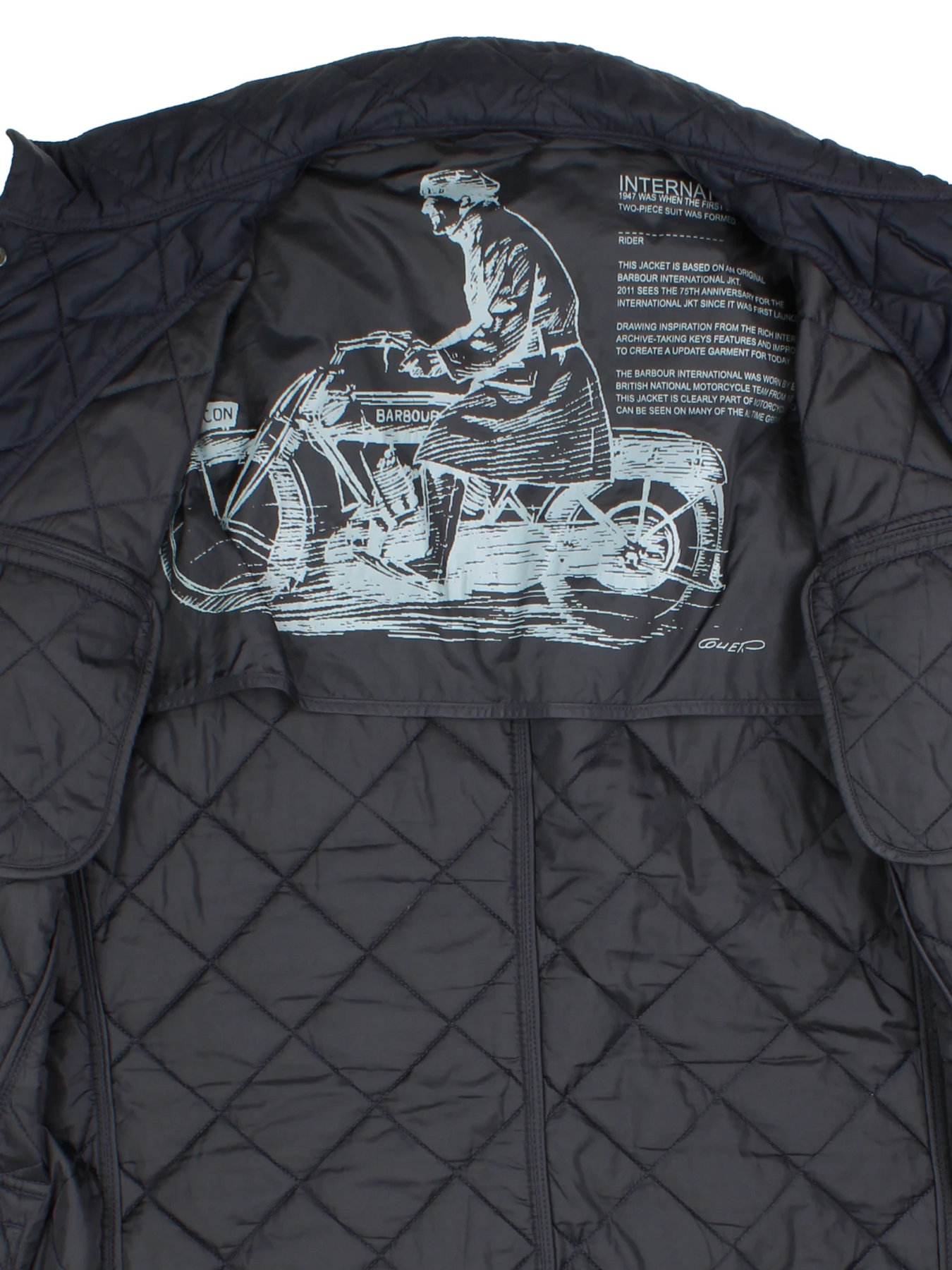 Add a touch of classic British sophistication to your wardrobe with this Barbour Navy Quilted International Jacket, crafted from premium nylon for lightweight durability and comfort. Designed with a distinctive diamond quilted pattern, this outerwear staple is perfect for elevating your casual and smart-casual looks. The jacket features signature Barbour branding, multiple functional pockets, and a secure snap-button front for ultimate practicality. The navy hue and meticulous detailing make it versatile enough for city strolls or countryside outings. Layer it over a sweater or shirt and pair with jeans or trousers for a truly versatile cold-weather essential.