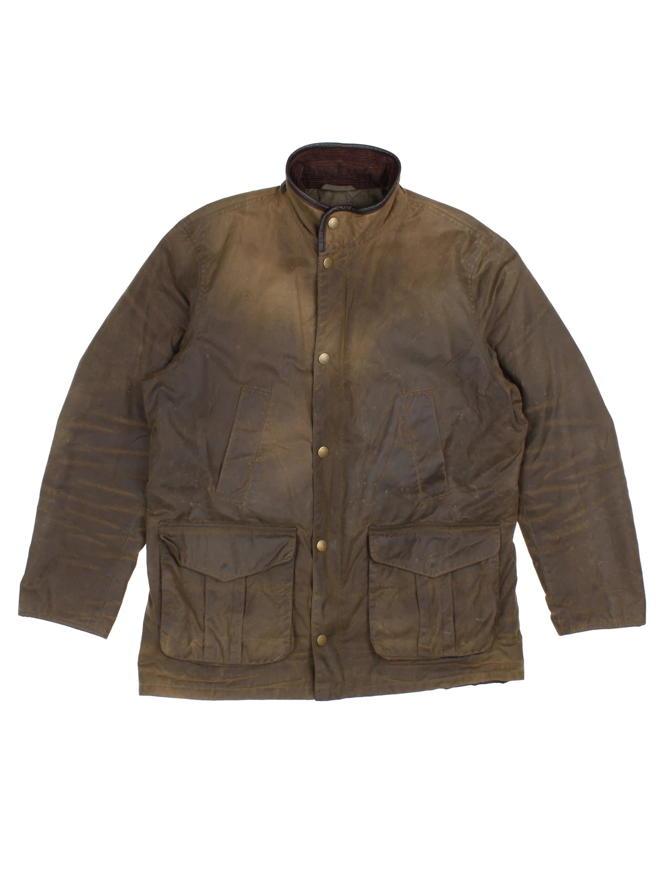 Elevate your outerwear collection with this authentic Barbour Waxed Cotton Jacket. Carefully constructed from durable waxed cotton, this iconic jacket offers reliable waterproof protection and classic appeal with its rich green hue, ideal for countryside strolls or city commutes. Distinctive quilted interior lining, a corduroy collar, and practical snap pockets fuse traditional British charm with rugged durability. Perfect for outdoor adventures or casual outings, this Barbour jacket epitomises the heritage quality and distinguished style the brand is renowned for. Make a statement and invest in a piece of history that is both practical and highly sought-after.
