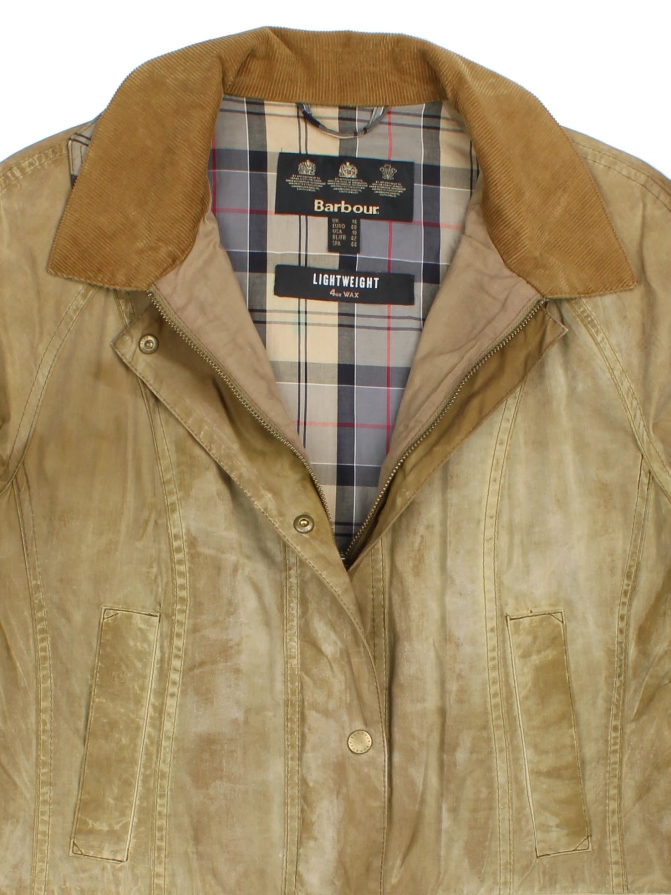 Elevate your outerwear collection with the timeless Barbour Lightweight Waxed Cotton Jacket in classic tan brown. The traditional cord collar and Barbour's signature tartan lining offer classic British heritage style combined with modern comfort. Suited for casual country outings or urban adventures, this jacket features practical front pockets and snap-button closures for secure storage and ease of wear. Styled in size S, the Barbour jacket delivers a versatile fit and enduring design that's perfect for layering over your favourite seasonal ensembles. Invest in an iconic piece that never goes out of fashion, offering robustness, practicality, and effortless style for every occasion.