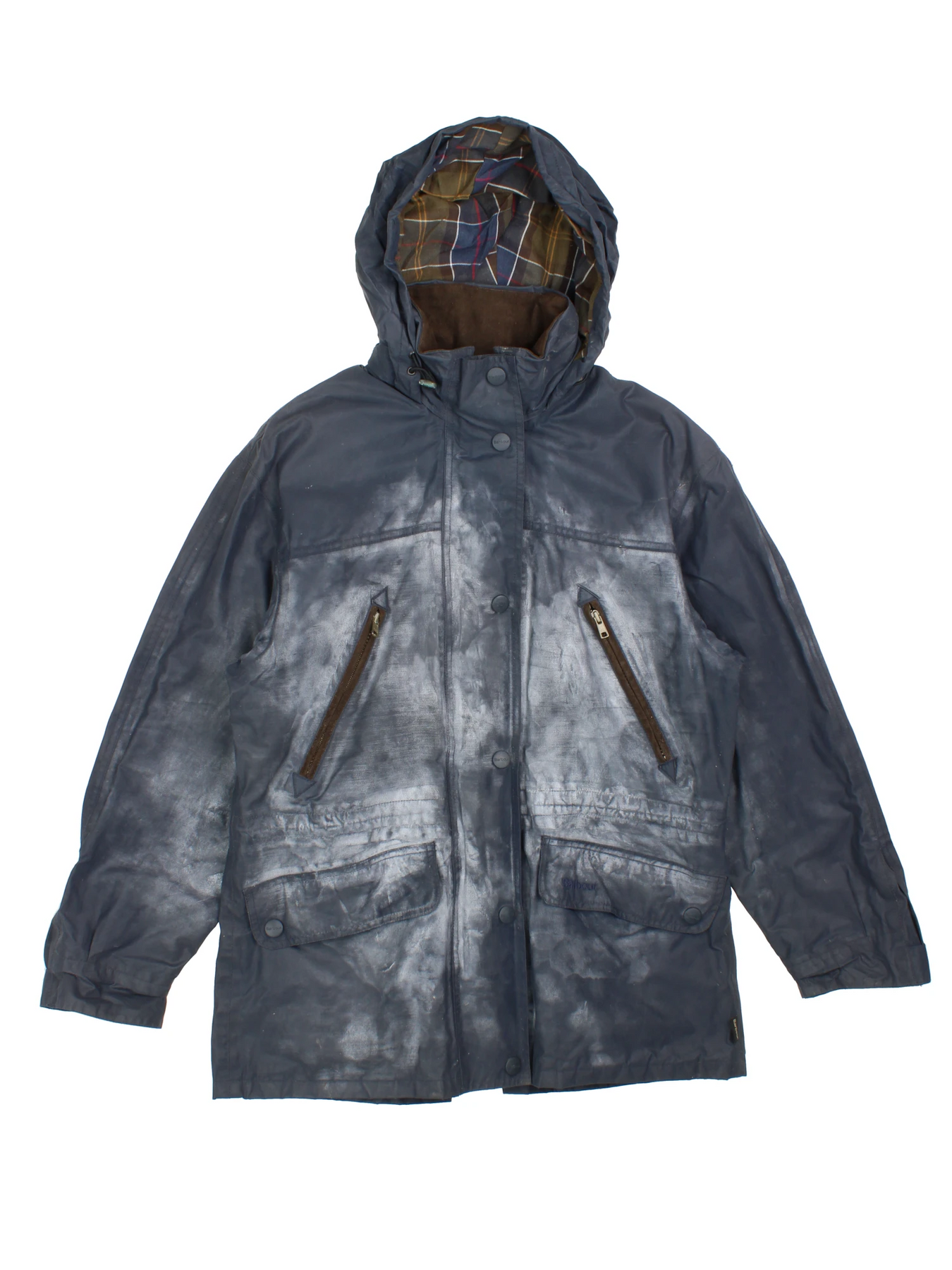 Entdecken Sie die robuste Raffinesse dieser wasserdichten Oberbekleidungsjacke aus gewachster Baumwolle in klassischem Blau von Barbour. Diese Jacke aus strapazierfähiger gewachster Baumwolle bietet hervorragende Wasserbeständigkeit und Atmungsaktivität und wird durch das ikonische Karofutter von Barbour ergänzt, das für zusätzlichen Komfort und Wärme sorgt. Die Jacke verfügt über eine praktische Kapuze, einen robusten Reißverschluss und Druckknöpfe sowie geräumige Utility-Taschen – perfekt für Outdoor-Abenteuer, Spaziergänge auf dem Land oder den täglichen Gebrauch in der Stadt. Verstärkte Ellbogen und hochwertige Nähte garantieren Langlebigkeit, während die lockere Passform in Größe S für uneingeschränkte Bewegungsfreiheit sorgt. Erweitern Sie Ihre Vintage-Oberbekleidungskollektion mit diesem unverzichtbaren Barbour-Modell, das traditionelle Ästhetik und Allwettertauglichkeit nahtlos miteinander verbindet.