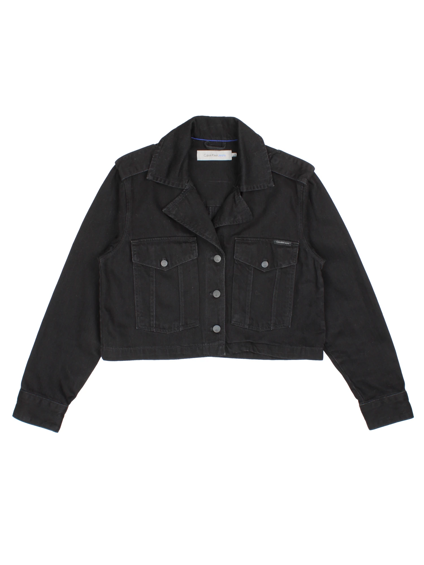 Elevate your wardrobe with the timeless Calvin Klein Jeans Women's Black Denim Cropped Jacket, expertly crafted from high-quality denim for the perfect blend of style and durability. This cropped jacket features classic Calvin Klein branding, a full button-up front, and dual chest pockets, making it a versatile staple ideal for layering through every season. The sleek black colourway offers easy pairing and a flattering silhouette, while the size M ensures a tailored yet comfortable fit for everyday wear. Whether you're heading out for casual brunches or evening events, this jacket pairs effortlessly with jeans or dresses, adding a touch of sophistication and edge to any ensemble. Refresh your collection with this iconic piece and step out in confidence and style.
