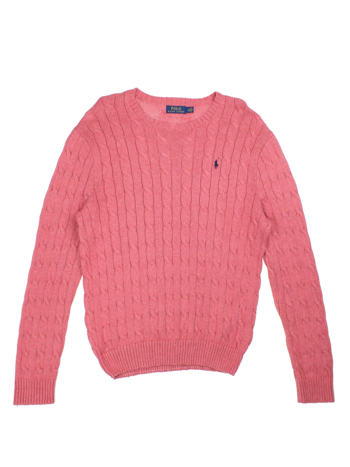 Add an elegant pop of colour to your wardrobe with this Polo Ralph Lauren Pink Cable Knit Jumper. The soft pink hue and classic cable knit design bring timeless style and versatility that can be dressed up or down. From casual weekend outings to smart-casual events, this vintage-inspired piece offers both warmth and a chic silhouette. Finished with the iconic Ralph Lauren logo, it stands as a statement of quality and heritage. Style this with jeans, skirts, or trousers for instant sophistication and all-day comfort.