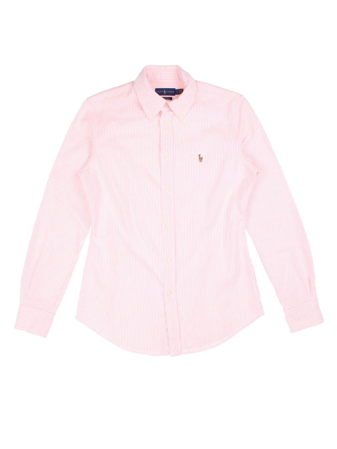 Refresh your wardrobe with the timeless appeal of this Ralph Lauren Custom Fit Pink Striped Cotton Shirt. This premium shirt features a soft pink and white striped design, offering a sophisticated look that’s suitable for both smart and casual occasions. Crafted from breathable, high-quality cotton, it ensures maximum comfort throughout the day. The iconic Ralph Lauren embroidered logo adds an unmistakable touch of elegance, while the button-down collar and fitted silhouette guarantee a flattering fit. Perfect for layering under blazers for the office, or pairing with denim for weekend outings, this versatile piece is a must-have staple for any modern wardrobe. Embrace effortless style and elevate your everyday ensembles with this beautiful Ralph Lauren essential.