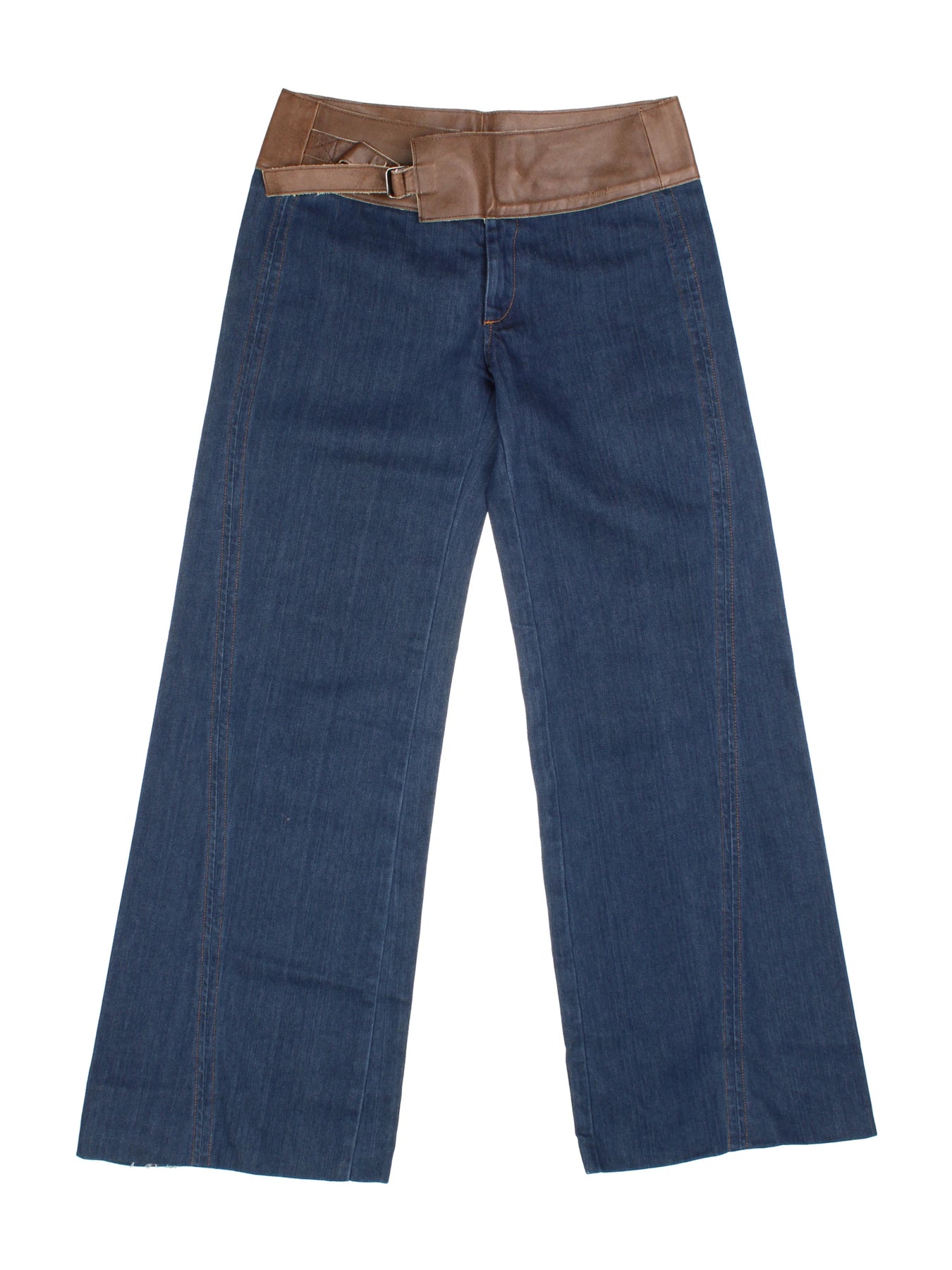 Embrace iconic retro vibes with these Calvin Klein Vintage Wide Leg Denim Jeans featuring a statement brown leather waistband. Perfect for casual outings, these stylish trousers easily pair with cropped tees or oversized sweaters for a classic streetwear edge. Invest in timeless fashion with Calvin Klein's innovative mix of textures and unrivalled denim craftsmanship.