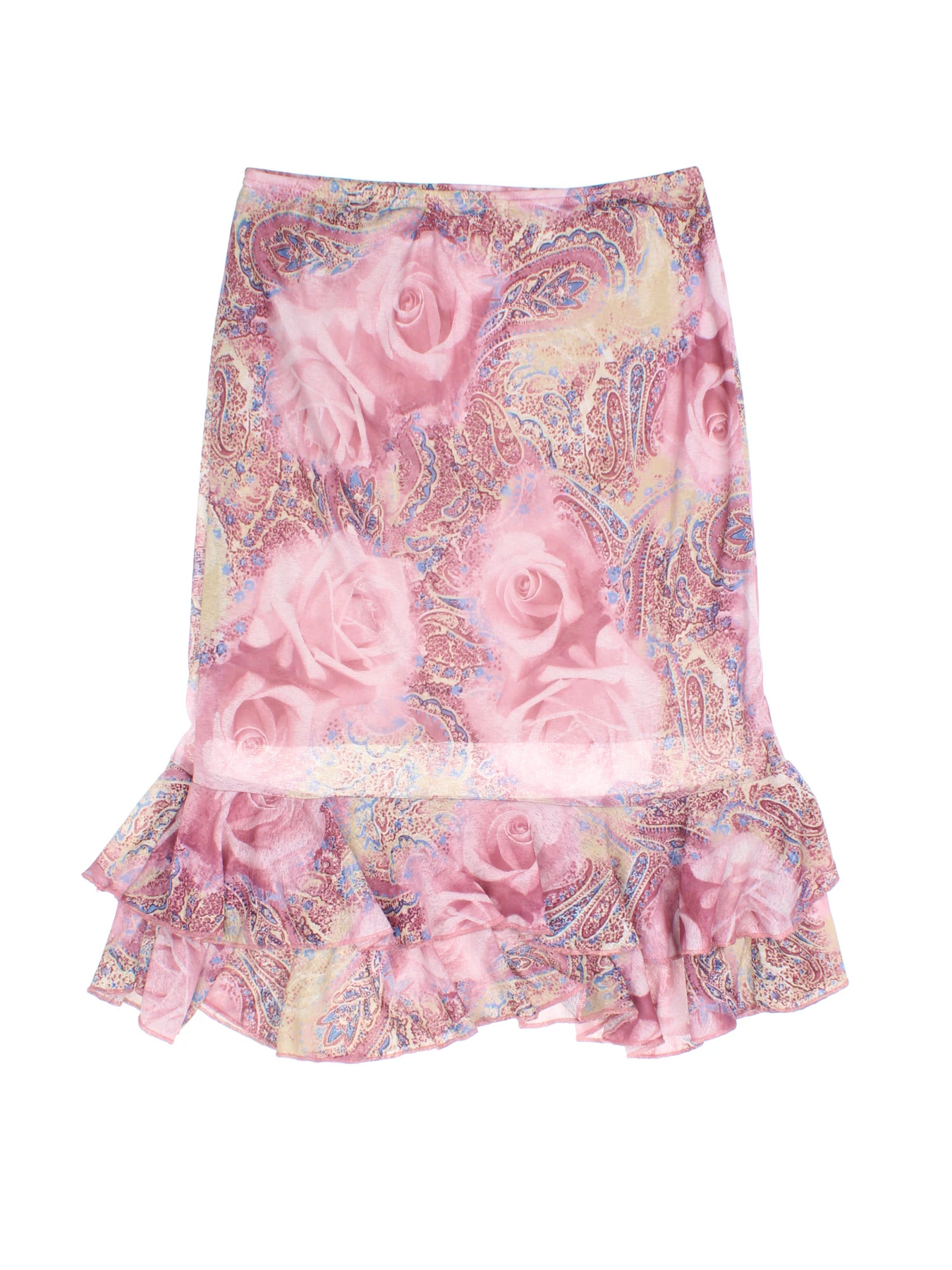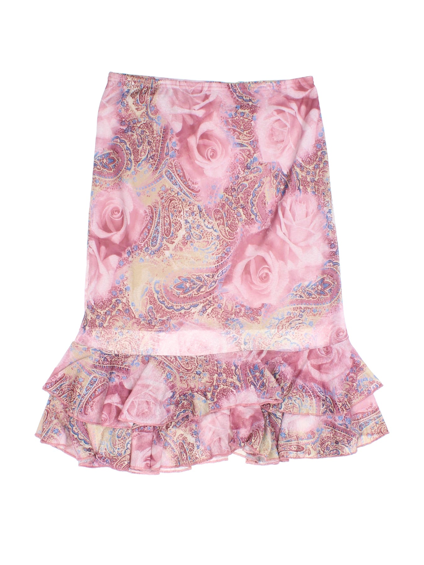 Inject a touch of feminine elegance into your wardrobe with this LIQUID Pink Paisley Rose Print Ruffle Mini Skirt, available in size M. Crafted from lightweight polyester, this skirt is perfect for channeling that iconic Y2K Vintage vibe. The delicate pink rose and paisley print offers a dreamy, romantic look, while the ruffled hem adds a playful, graceful flair ideal for day-to-evening transitions. Designed with comfort and style in mind, it pairs beautifully with fitted tops and sandals for casual outings, or dress it up with heels for evenings out. A must-have statement skirt for anyone looking to embrace effortless chic style this season.