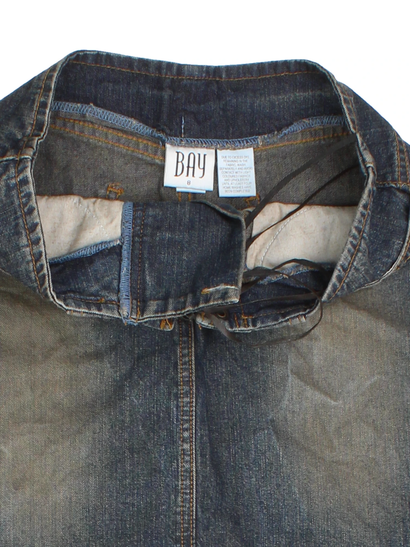 Step into the Y2K trend with this classic Bay Blue Denim Mini Skirt, designed to add a nostalgic vibe to your casual style. Made from high-quality cotton blend denim, this skirt features a unique lace-up front design and subtle faded details for a truly vintage look. The two back pockets and mini length make it perfect for pairing with graphic tops and trainers, ideal for everyday wear or outings with friends. Whether you're refreshing your wardrobe or looking for a unique vintage find, this skirt is a versatile staple that's both flattering and comfortable. Embrace the 2000's style and make a statement with this stylish piece, easily matched for both daytime and evening looks.