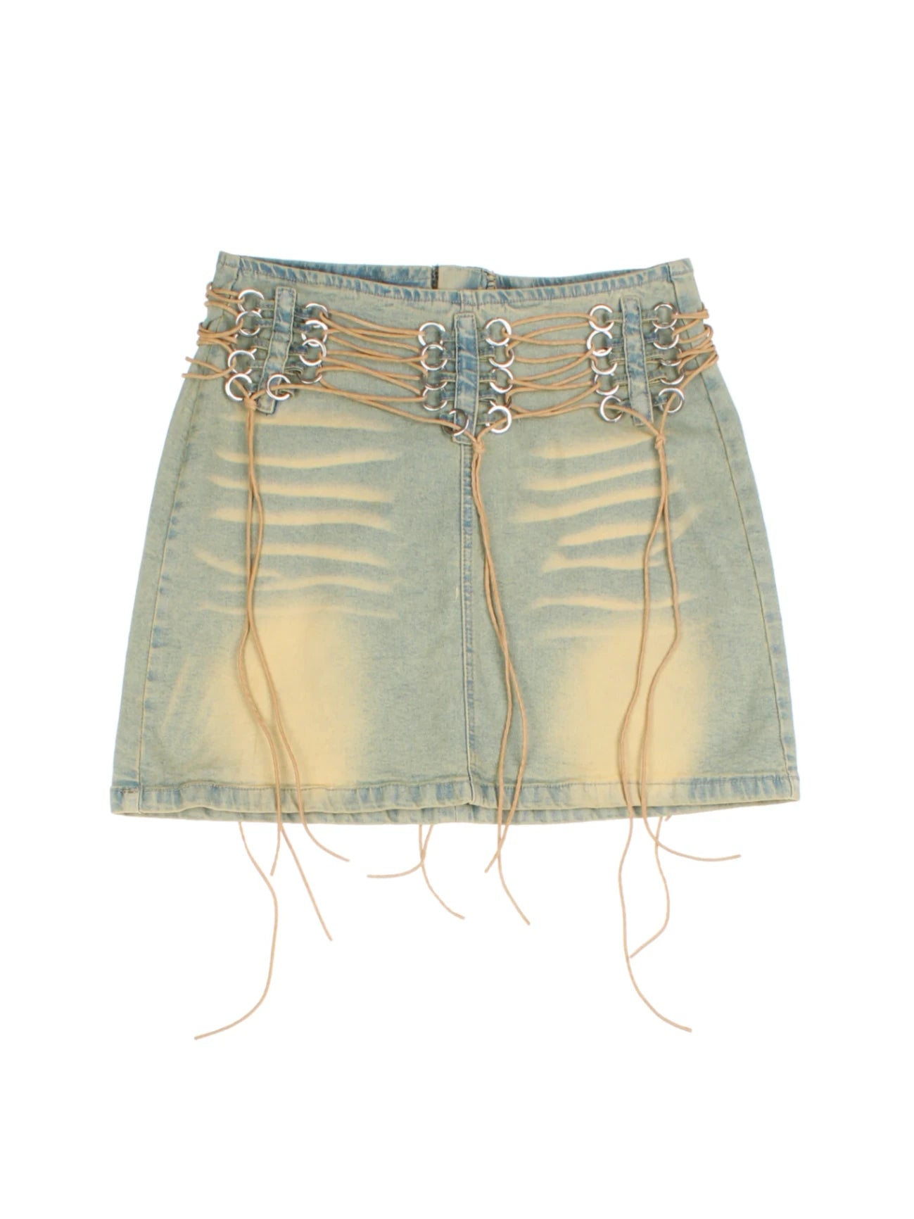 Step into retro-inspired fashion with the striking Porta Porte Y2K Light Wash Denim Mini Skirt, expertly designed for those who are passionate about bold, statement looks. This unique skirt features a classic light blue wash with an eye-catching corset lace-up detail around the waistline, blending playful Y2K charm with vintage 90s appeal. Crafted from high-quality cotton denim, this mini skirt ensures a comfortable, breathable fit perfect for everyday wear or standout party looks. Whether you pair it with chunky trainers or boots, this versatile skirt is destined to become your new wardrobe favourite.