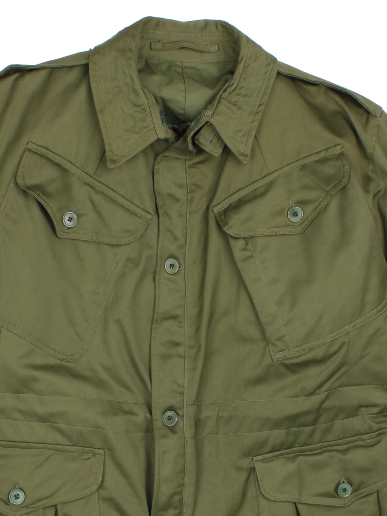 Step into authentic vintage military style with this classic olive green Combat Smock Jacket, expertly crafted from durable cotton for all-day comfort and dependability. Inspired by British Army issue outerwear, this jacket features four spacious buttoned pockets for practicality, reinforced stitching, and a traditional pointed collar, making it a timeless piece for workwear or casual layering. Its relaxed fit in size M ensures versatile styling over shirts and jumpers, while the distinctive olive shade adds to its rugged, utilitarian appeal. Layer it over your favourite pieces for a confident, standout ensemble.
