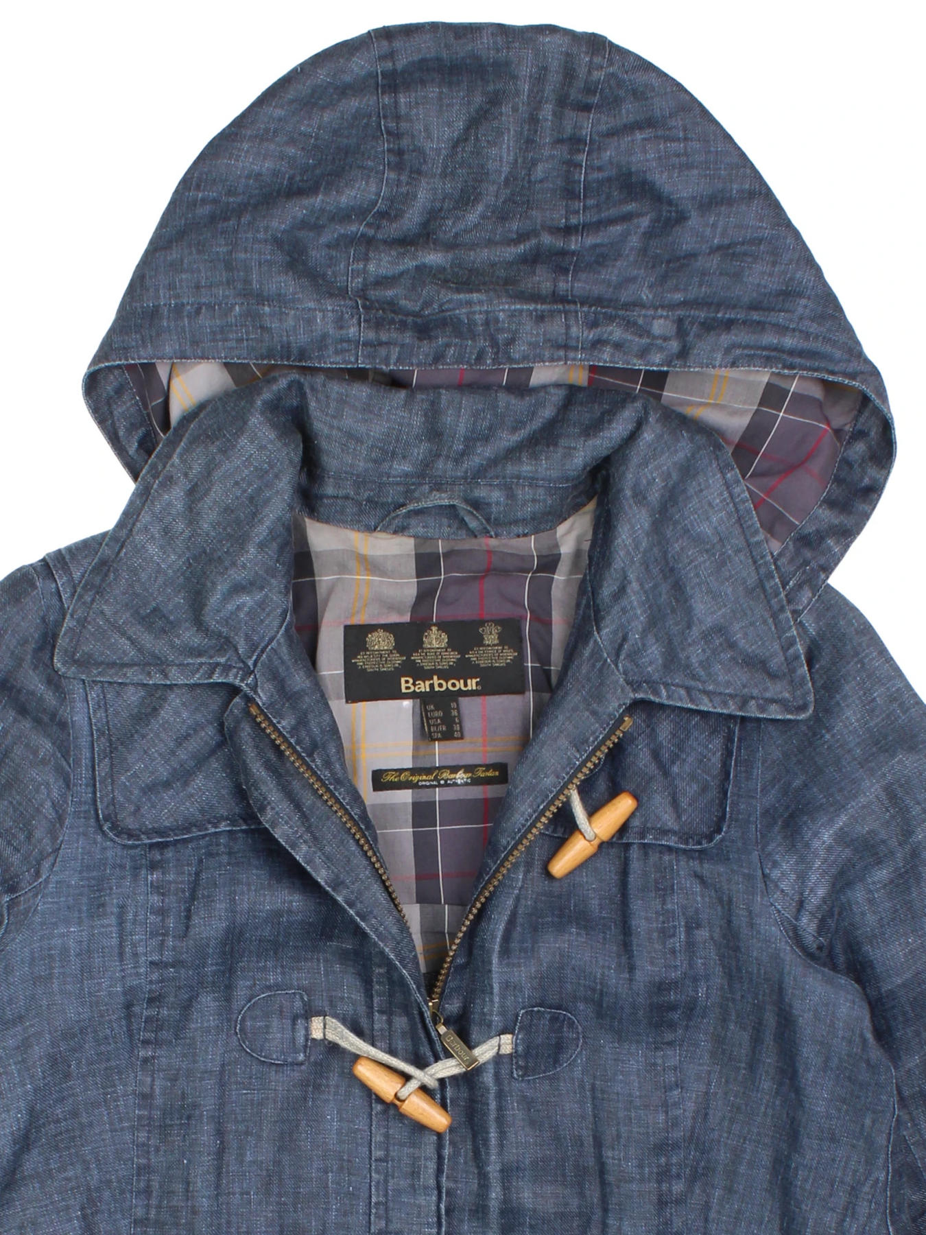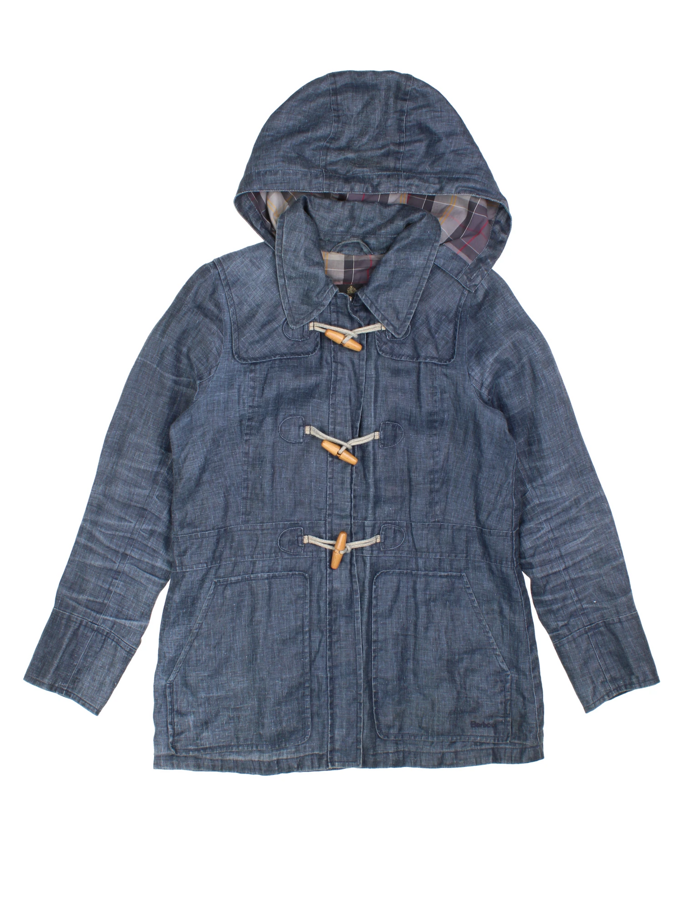 Experience timeless style and durability with the Barbour Blue Cotton Duffle Hooded Jacket in size S, perfect for outdoor adventures or everyday wear. This jacket features a practical hood and toggle fastening for a classic duffle look, while the breathable cotton material ensures comfort across seasons. The blue hue effortlessly matches any casual outfit, and the checked inner lining adds a stylish heritage touch. Ideal for layering, it's the ultimate vintage-inspired piece to upgrade your outerwear collection. Pair with jeans or chinos for a refined, effortless look.