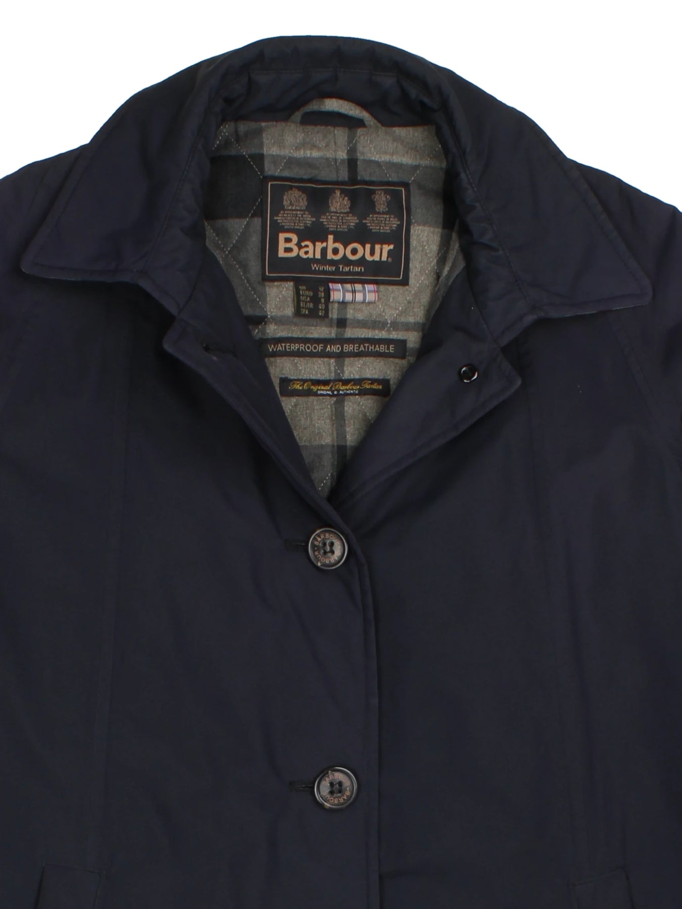 Embrace timeless British style with the Barbour Winter Tartan Navy Trench Coat, expertly crafted for those who appreciate classic sophistication and reliable performance. This overcoat is constructed from premium polyester, ensuring a waterproof and breathable finish that keeps you comfortable in any weather. The coat features the signature Barbour tartan lining, adding a heritage touch, while the medium size offers a flattering and practical fit. Designed for outerwear and trench coat enthusiasts, this navy blue jacket is both durable and elegantly tailored, making it perfect for city commutes, countryside strolls, or everyday layering. With robust button fastening and practical pockets, it balances functionality with traditional charm, delivering an essential wardrobe staple that combines heritage, comfort and adaptability.