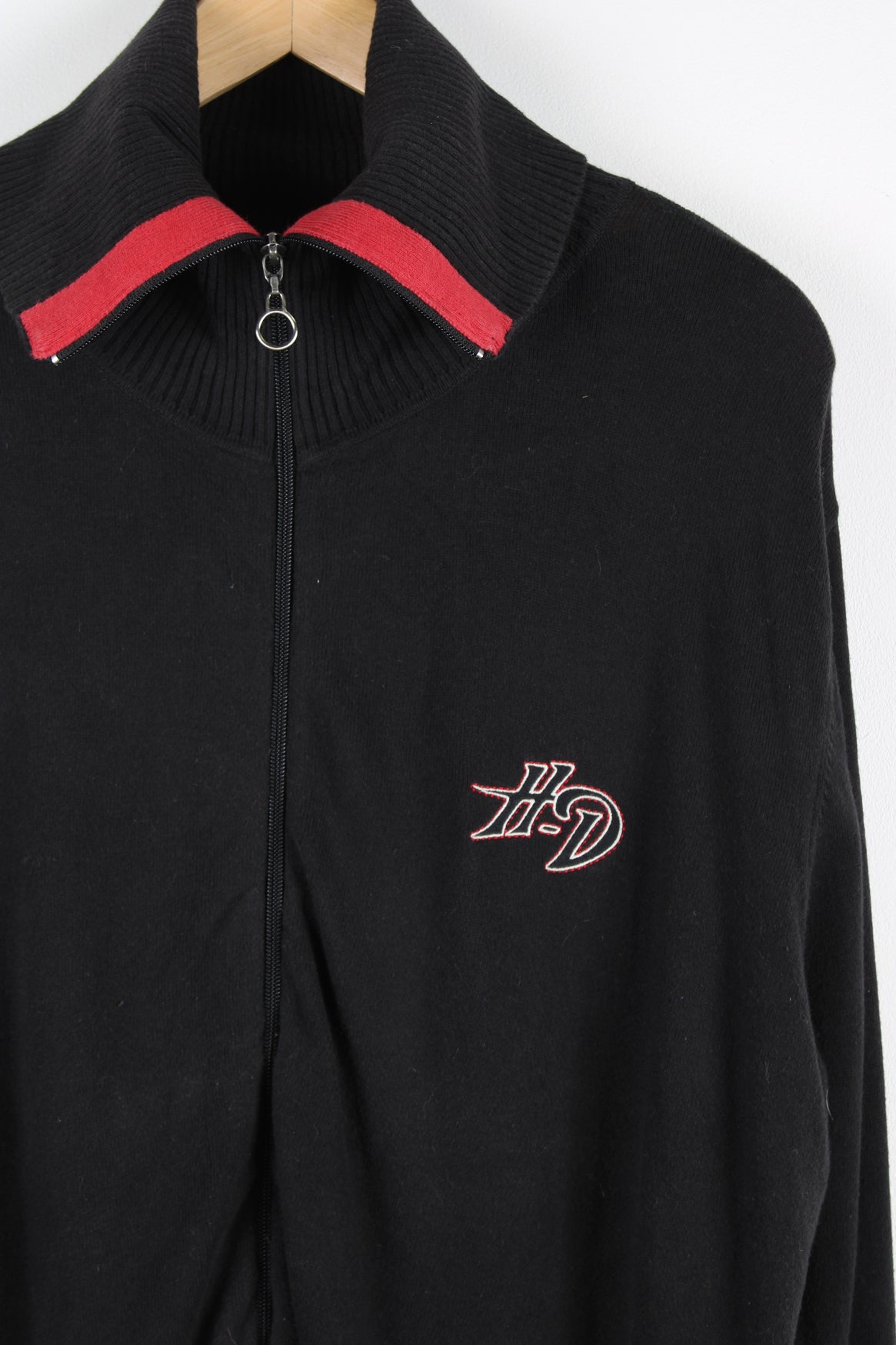 Vintage Harley Davidson knitted jumper, double zip up with big collar, lightweight sweatshirt with embroidered logo on the chest.