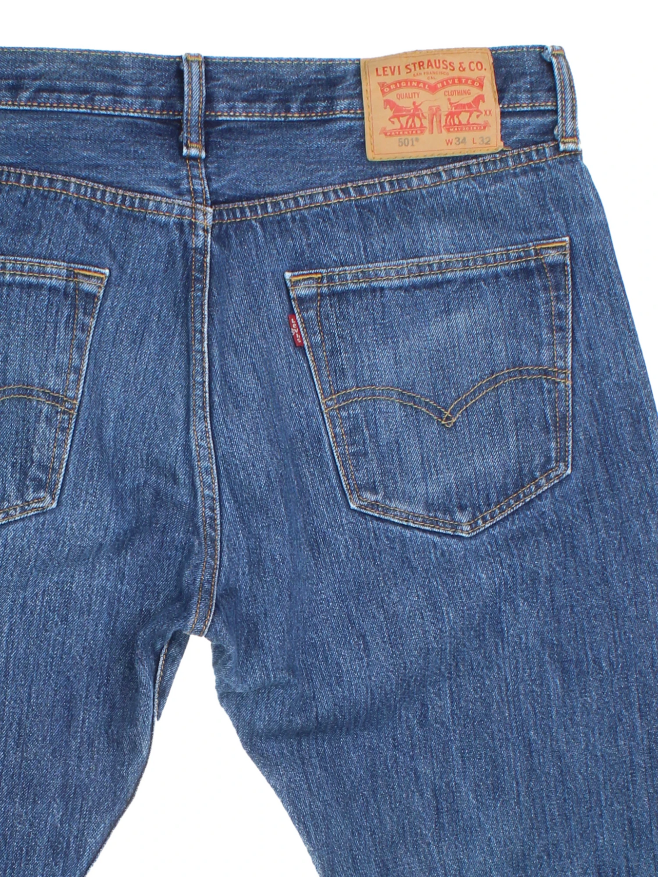 Elevate your everyday wardrobe with the iconic Levi Strauss 501 Classic Denim Jeans in a timeless blue wash, crafted for those who appreciate both style and durability. Made from high-quality cotton, these jeans ensure maximum comfort and breathability, perfect for daily wear. Featuring a straight fit with a classic five-pocket design and a sturdy button fly, the W34 L32 size offers a comfortable and flattering silhouette. Distinctive Levi's branding and the renowned leather patch at the back add authenticity and vintage appeal. Ideal for fans of casual and retro-inspired looks, these jeans are versatile enough for any occasion, pairing effortlessly with t-shirts, shirts or jumpers. Make these essential jeans a staple in your collection and experience enduring style and comfort.
