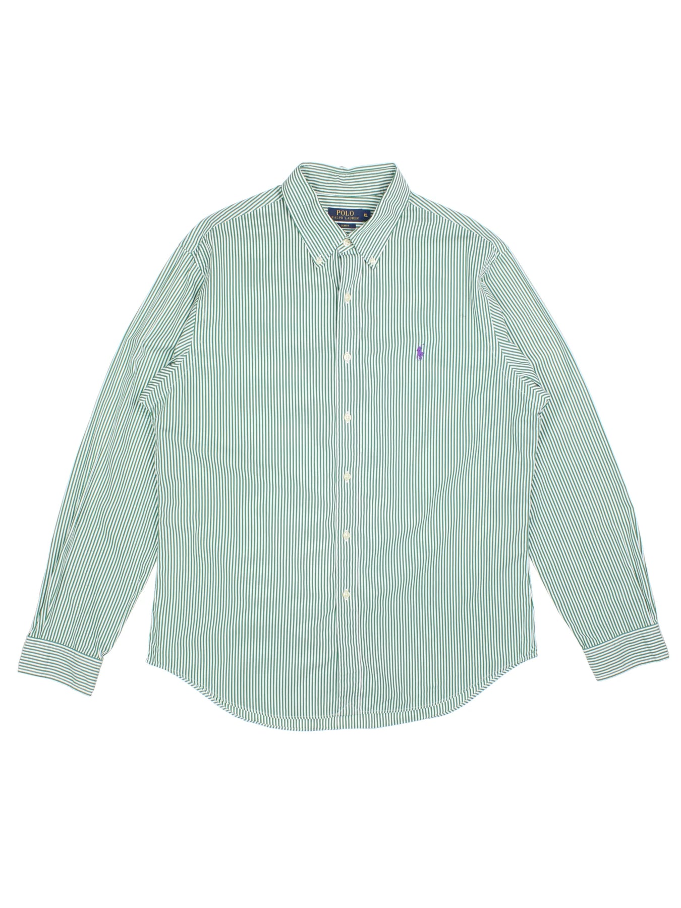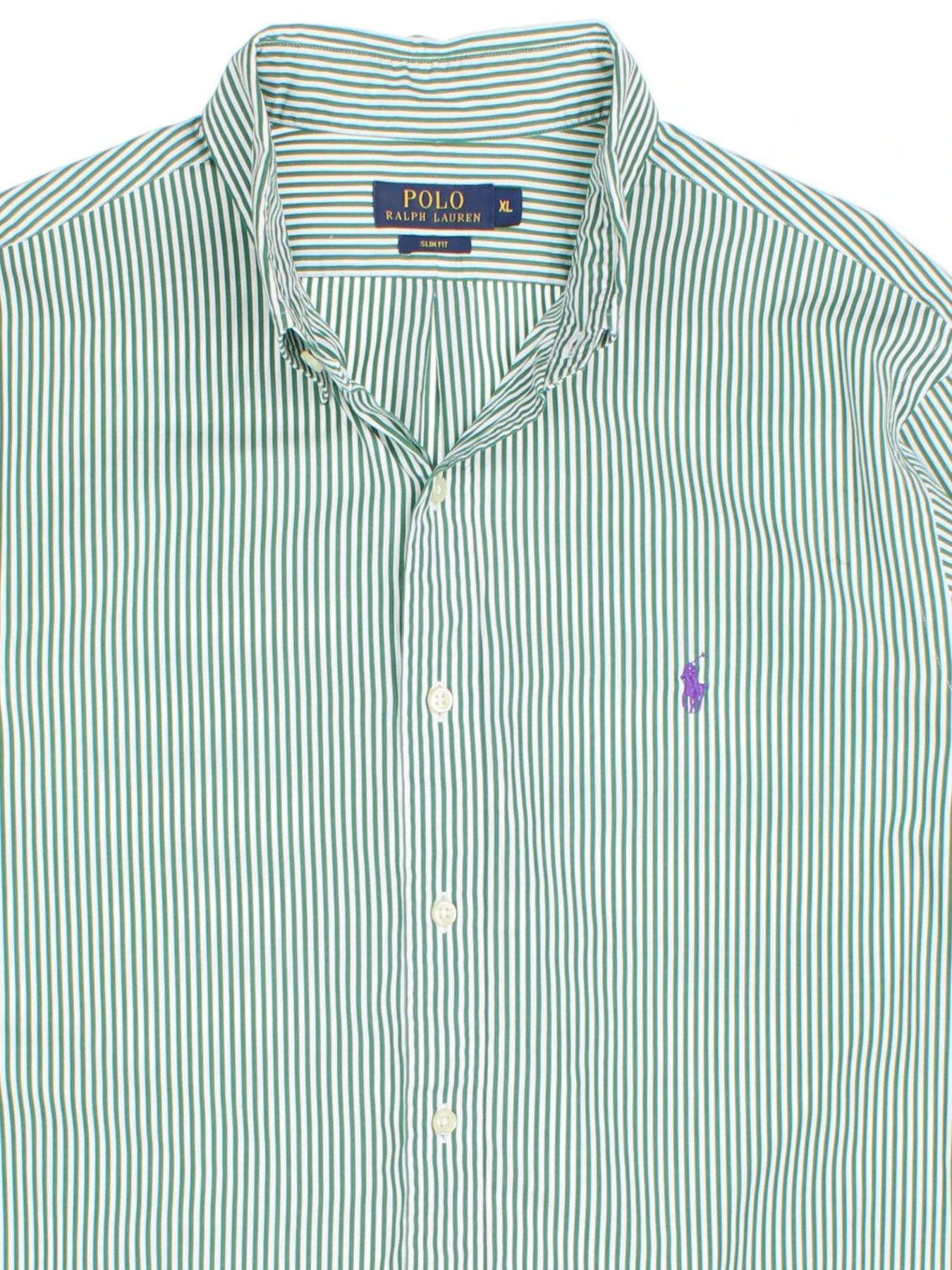 Elevate your wardrobe with this Ralph Lauren Green & White Stripe Cotton Shirt in XL, designed for timeless sophistication and effortless style. Crafted from breathable cotton, the slim fit cut delivers a sharp silhouette while ensuring everyday comfort, perfect for both professional and casual outings. The classic long sleeve design and crisp vertical stripes lend a fresh, upscale look that seamlessly pairs with jeans or tailored trousers. Ideal for men seeking versatile, statement-making vintage pieces, this shirt's distinctive Ralph Lauren branding and expert tailoring add a luxurious touch to any collection. Add this standout shirt to your selection for a refined, versatile, and durable staple that’s perfect for all seasons.
