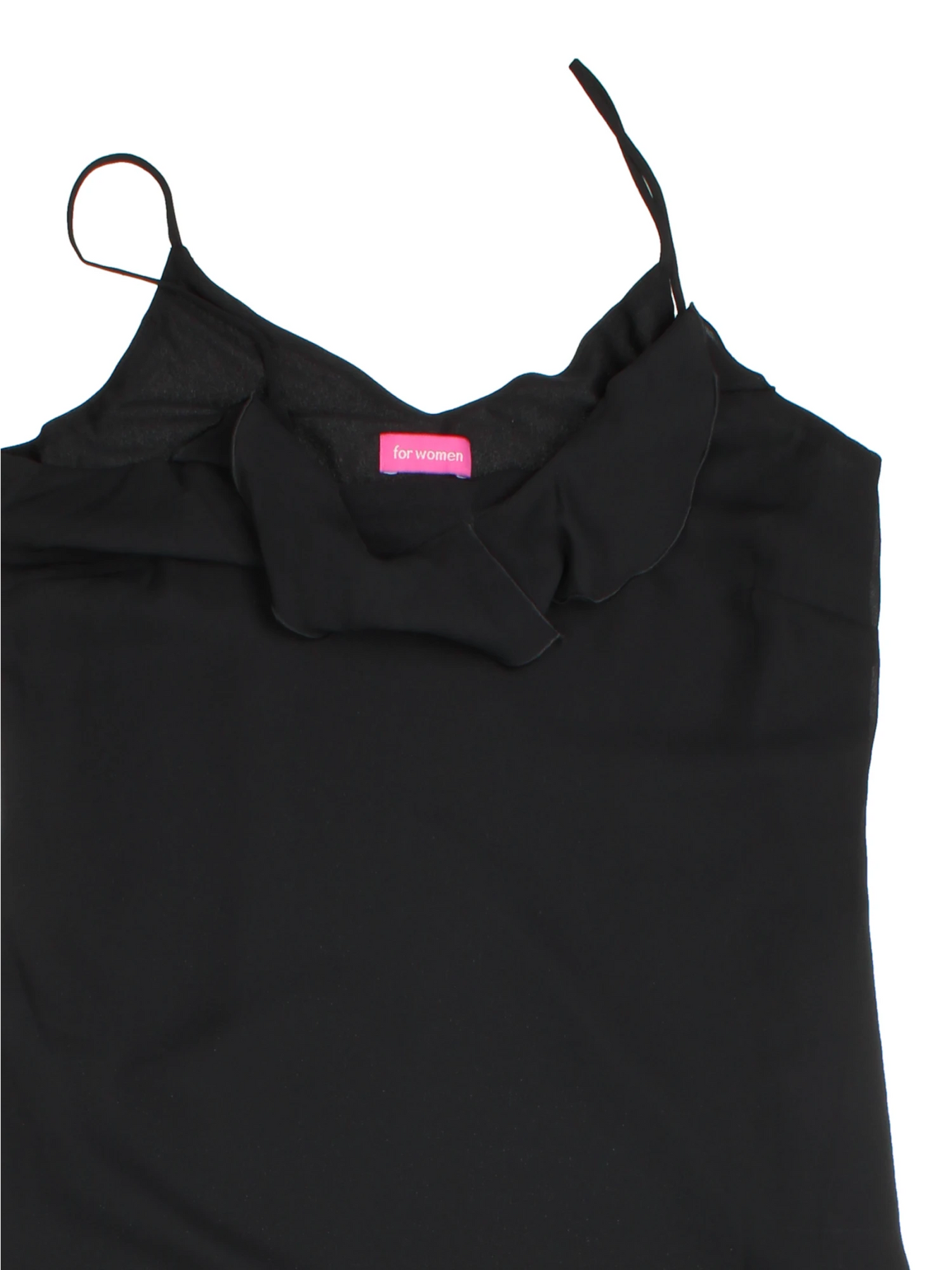 Elevate your special occasion wardrobe with this elegant Vintage Black Ruffle Trim Midi Dress. Crafted from lightweight polyester, this sleeveless dress features a sophisticated ruffle trim and delicate straps, perfect for evening events or smart-casual gatherings. The chic black colour ensures easy pairing with your favourite accessories, while the classic midi length provides a timeless silhouette. Designed in size XXS for a flattering fit, this dress exudes understated glamour, making it an ideal choice for celebrations or statement daywear. Style it with heels or sandals for the ultimate versatile piece that belongs in every modern wardrobe.