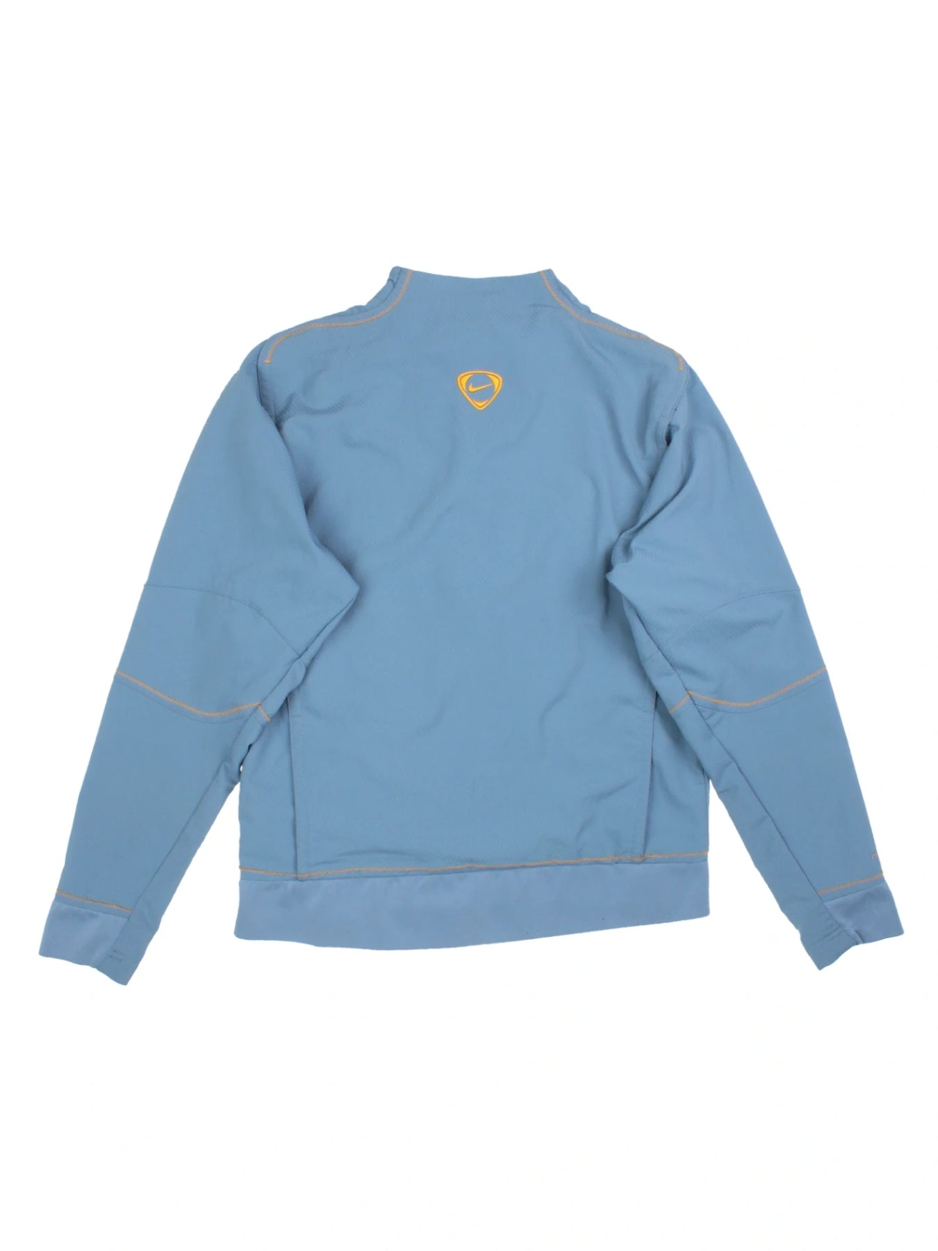 Elevate your sportswear collection with this vintage Nike track jacket, featuring a stylish blue colourway and a comfortable full-zip design. Perfect for training or casual wear, this jacket is crafted for optimal performance and durability. The iconic Nike branding adds a touch of sporty flair, while the lightweight material ensures breathability and ease of movement. Ideal for layering, this track jacket is a versatile addition to any wardrobe, offering both style and functionality for the active individual.
