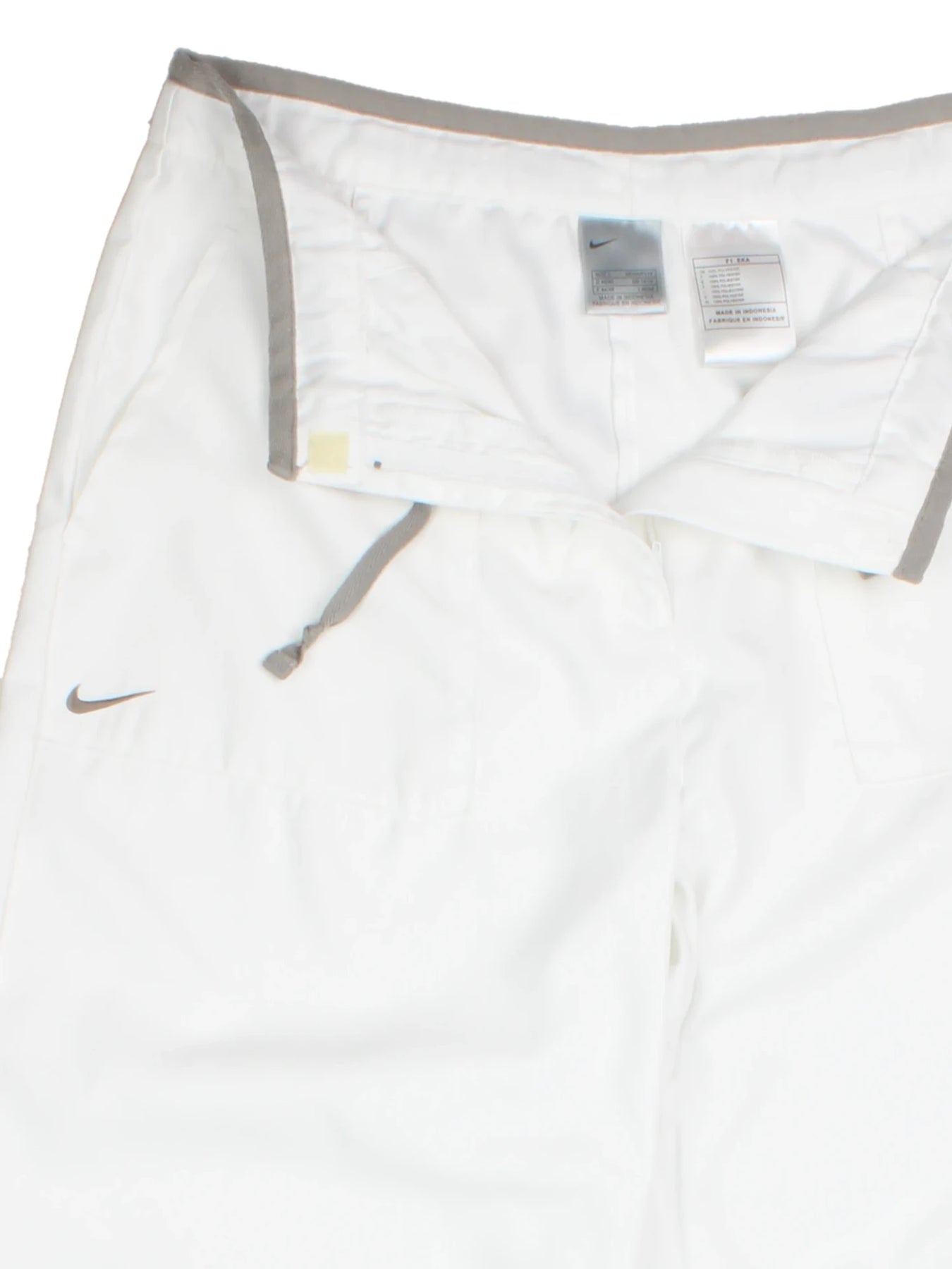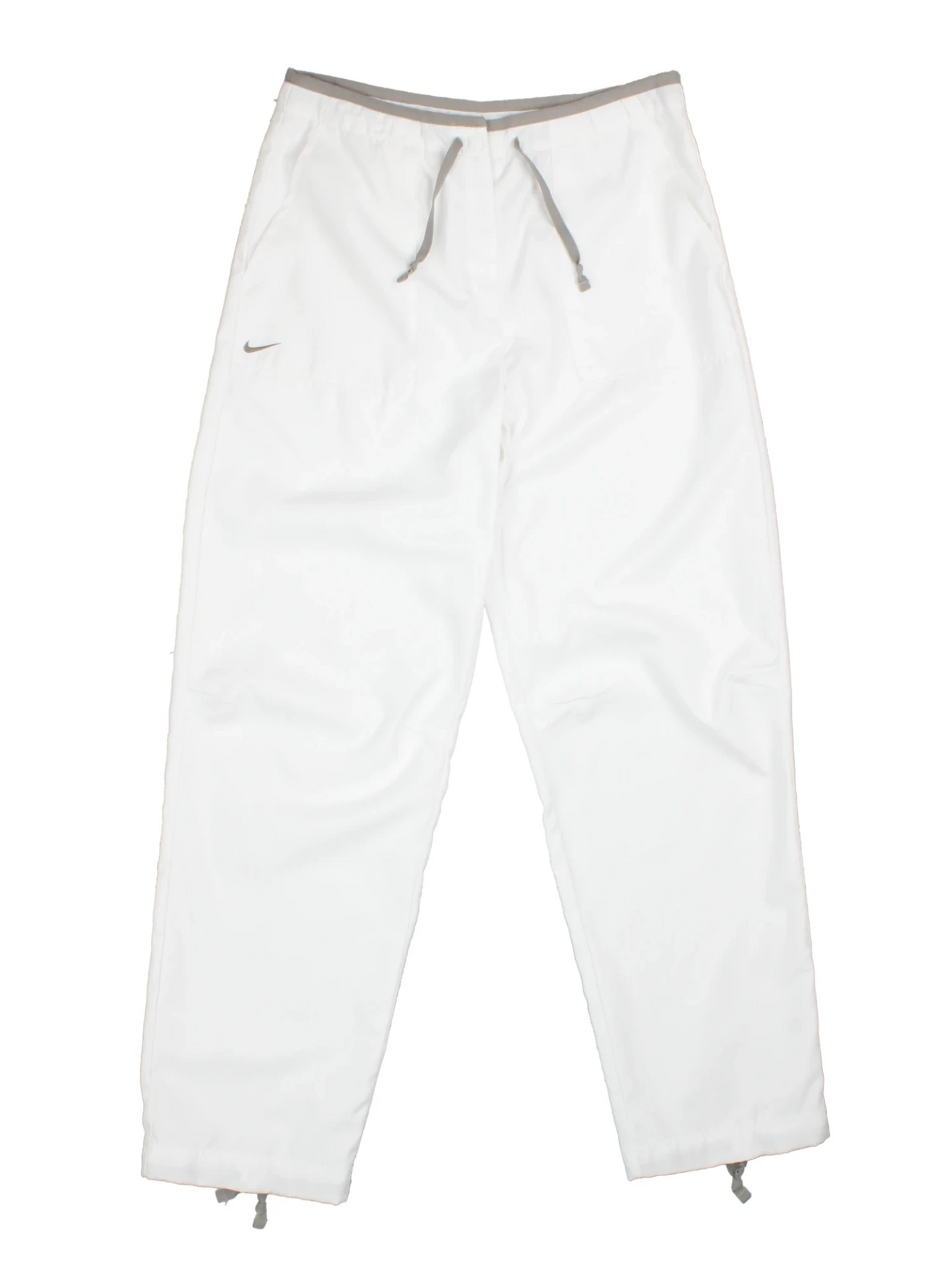 Upgrade your athleisure wardrobe with these Nike white polyester trousers. Constructed from lightweight, durable polyester, these trousers are designed to keep you cool and comfortable during any activity. The adjustable grey drawcord waist and ankle toggles ensure a customised fit, while the iconic Nike branding signifies timeless sports fashion. Perfect for casual outings, training sessions or relaxing at home, these trousers offer a versatile, modern aesthetic that complements any sportswear collection. Pair with your favourite trainers and tops to create a dynamic outfit ideal for any season.