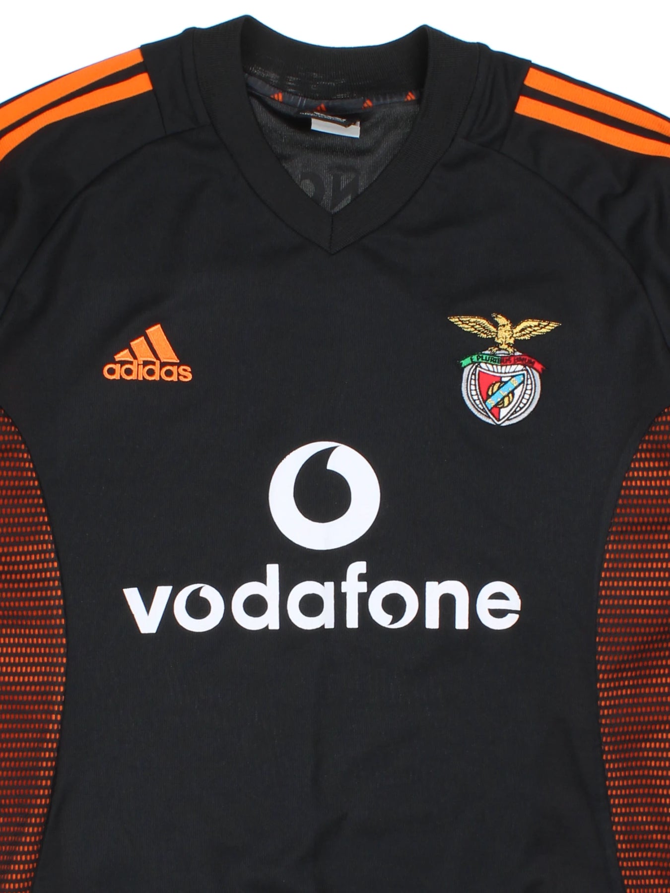 Step onto the pitch or into everyday style with this Adidas Benfica Football Shirt in classic black with striking orange side panelling and details. Featuring the embroidered club crest and Vodafone sponsor print, this iconic 00's era football top blends nostalgia and performance. Crafted from lightweight polyester, the breathable material is ideal for both training sessions and casual wear. Pair with jeans or shorts for a sporty statement on and off the field. Excellent for match days, streetwear styling, or as a vintage sportswear piece for your rotation.