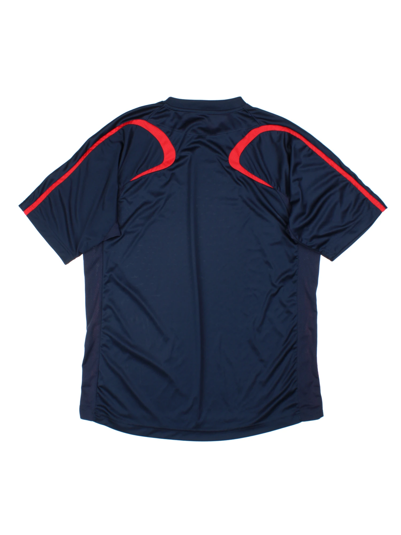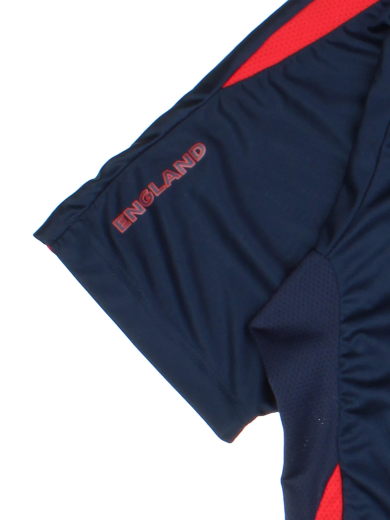 Elevate your football wardrobe with the classic Umbro England Navy Blue Red Polyester Football Shirt, designed for passionate fans and casual wearers alike. This shirts combines breathable polyester fabric with a relaxed fit, ensuring ultimate comfort during matches or everyday activities. Featuring the iconic official Three Lions crest and England detail on the sleeve, the bold navy blue body accented with striking red panels makes this shirt a standout for supporters. Ideal for pairing with jeans or training shorts, it captures the spirit of England’s football legacy. Perfect for match days, training sessions, or sports-inspired street style, it’s a must-have addition to your collection.