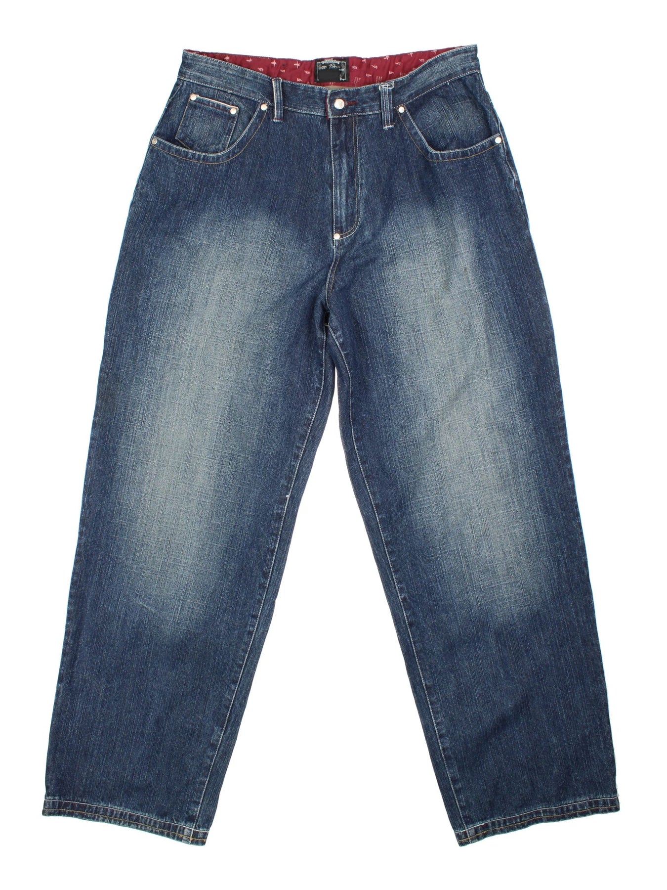 Vintage 90's Phat Farm Jeans in blue colourway, with multiple pockets, contrast stitching and embroidered branding on the back.