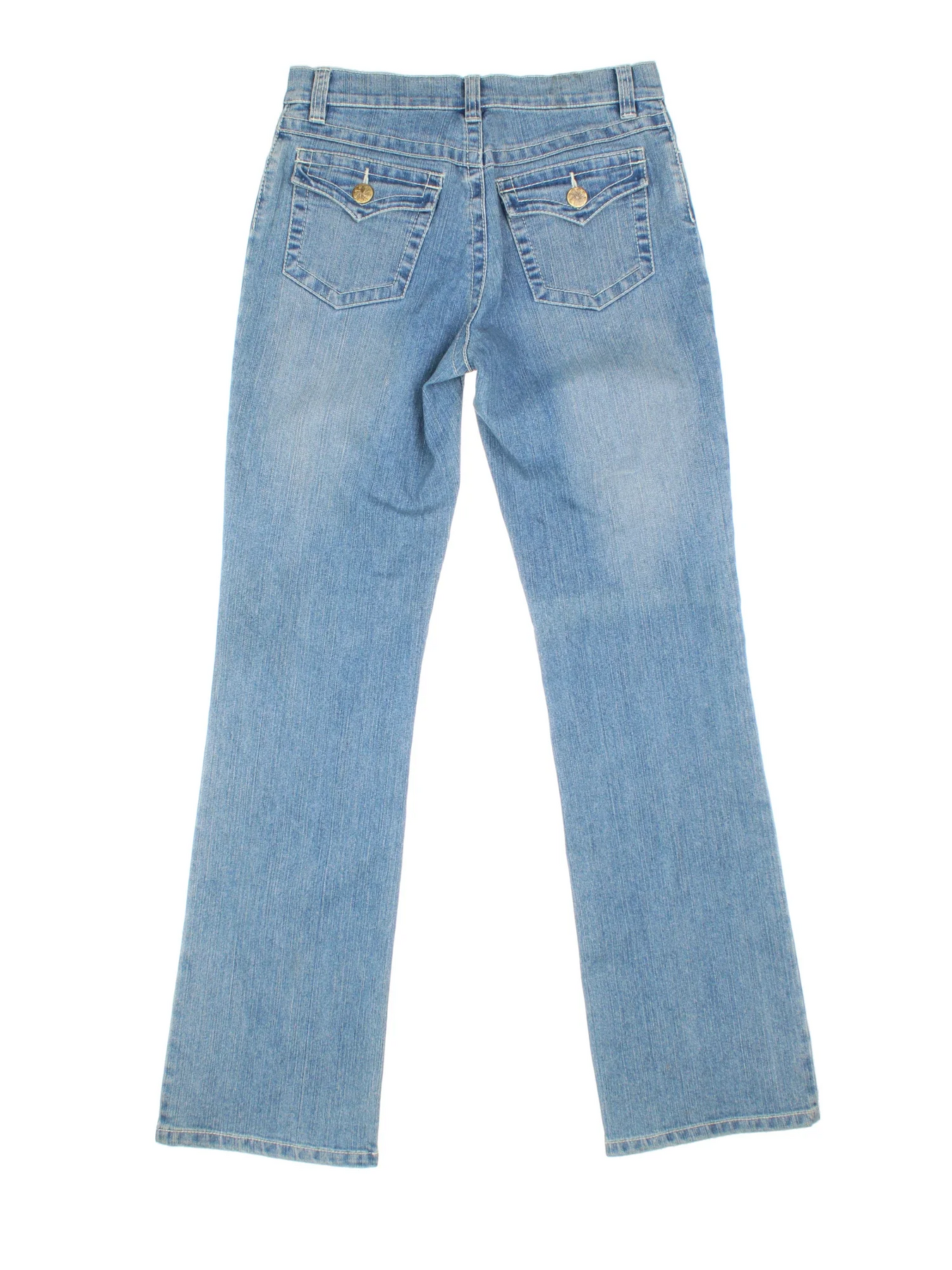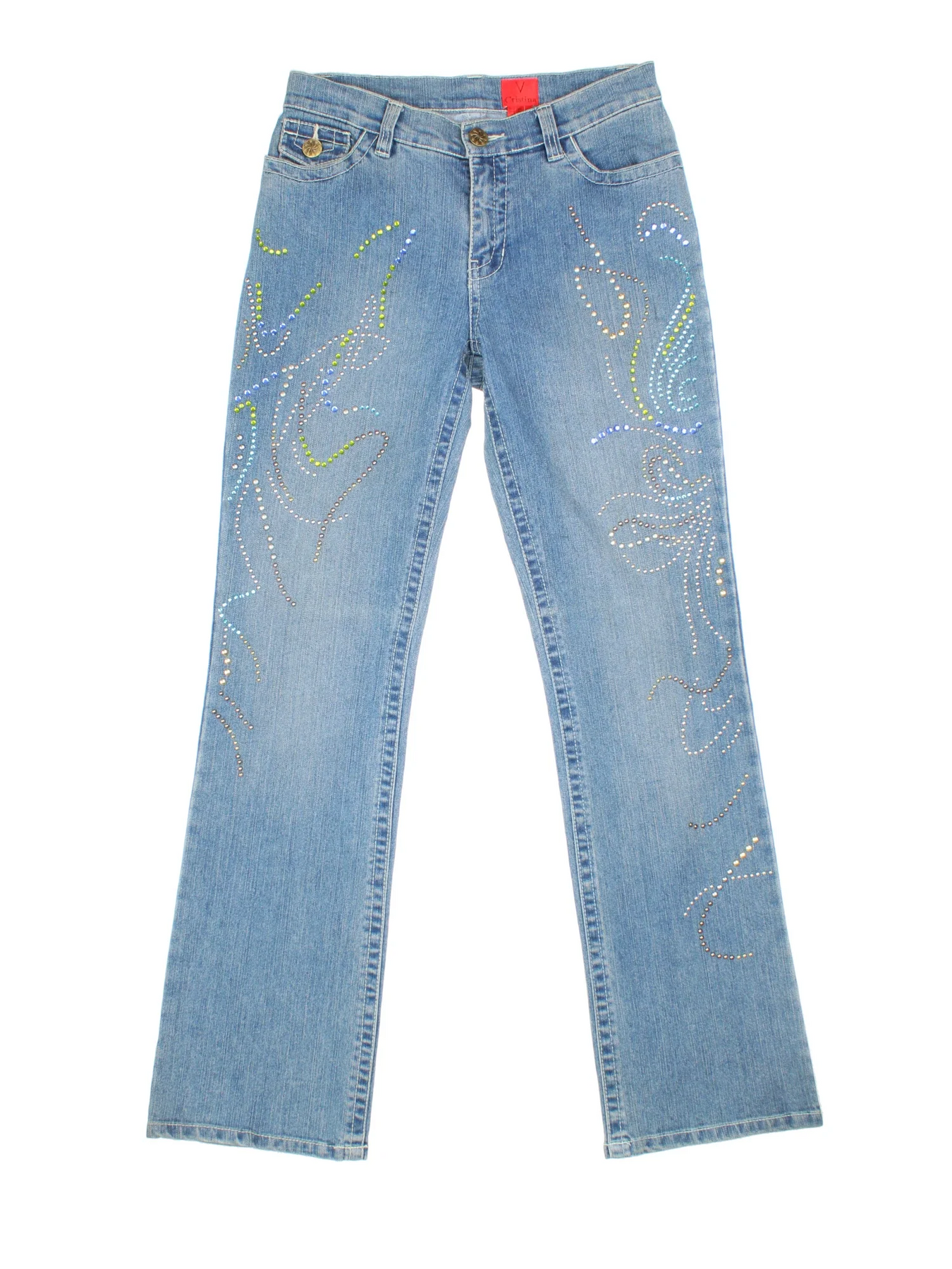 Y2K Rhinestone Flared Jeans in blue colourway. Multiple pockets and all over rhinestone detail.