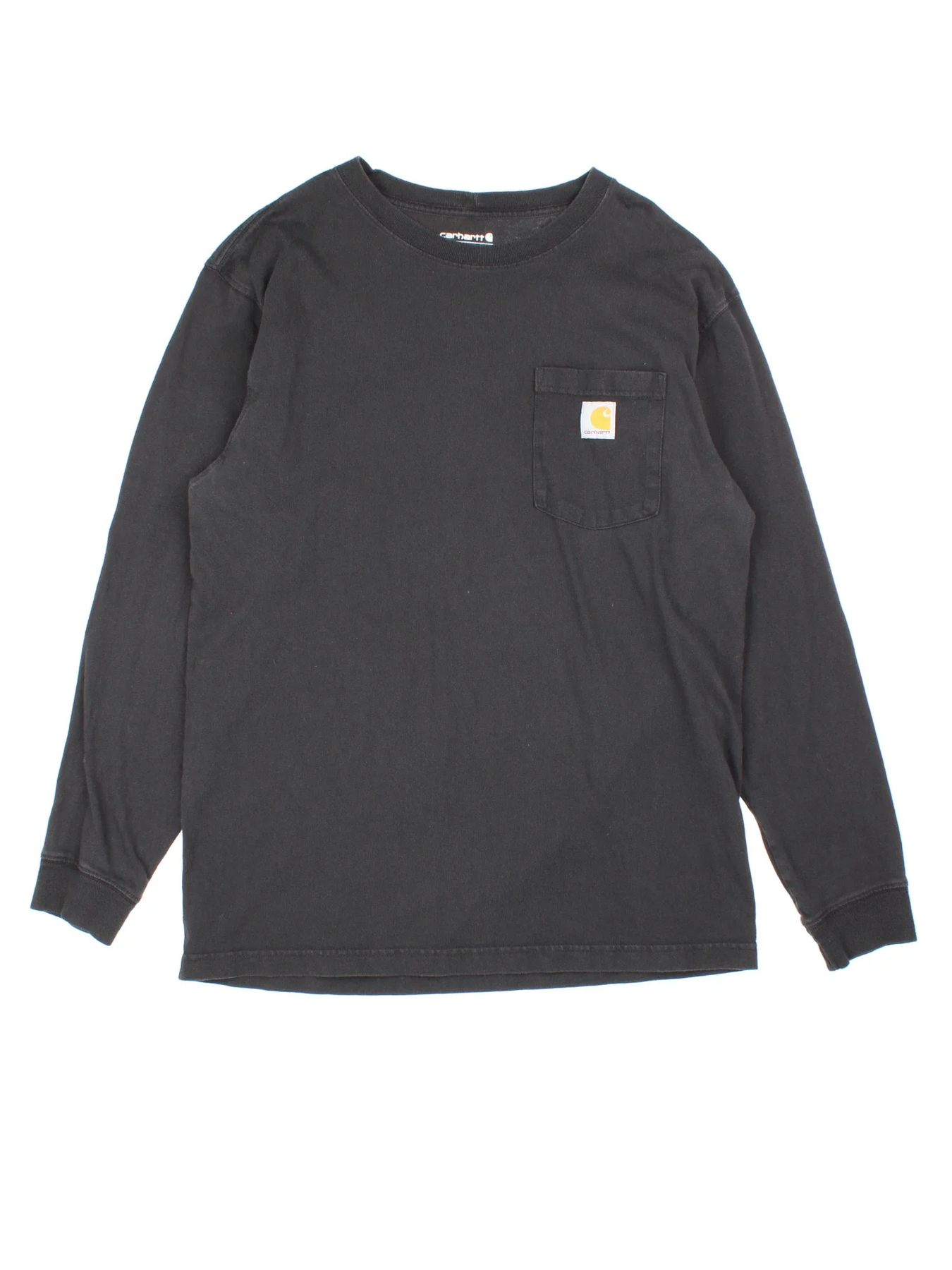 Vintage Carhartt Long Sleeve T-Shirt in a black colourway, pocket and branding embroidered on the front.