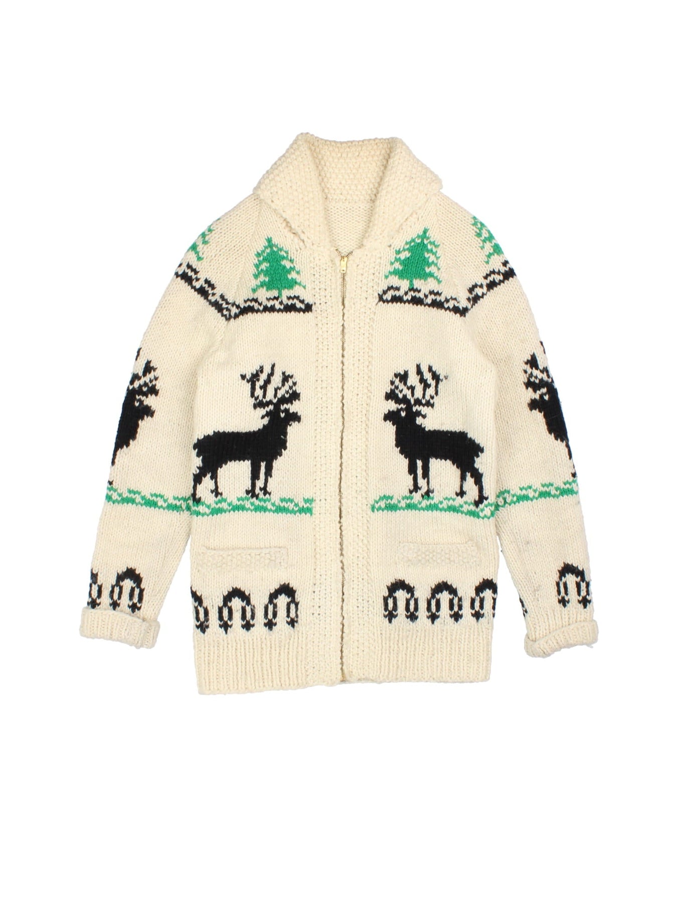 Vintage Cowichan Reindeer Cardigan (Size S)