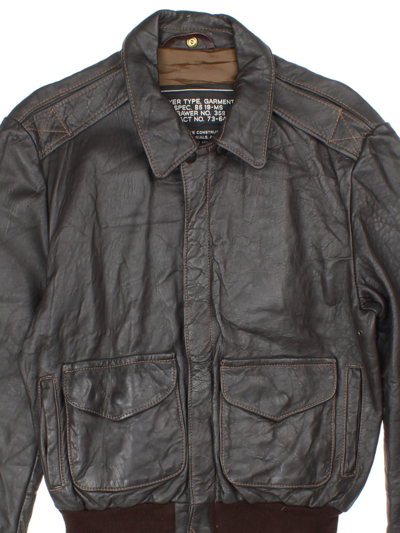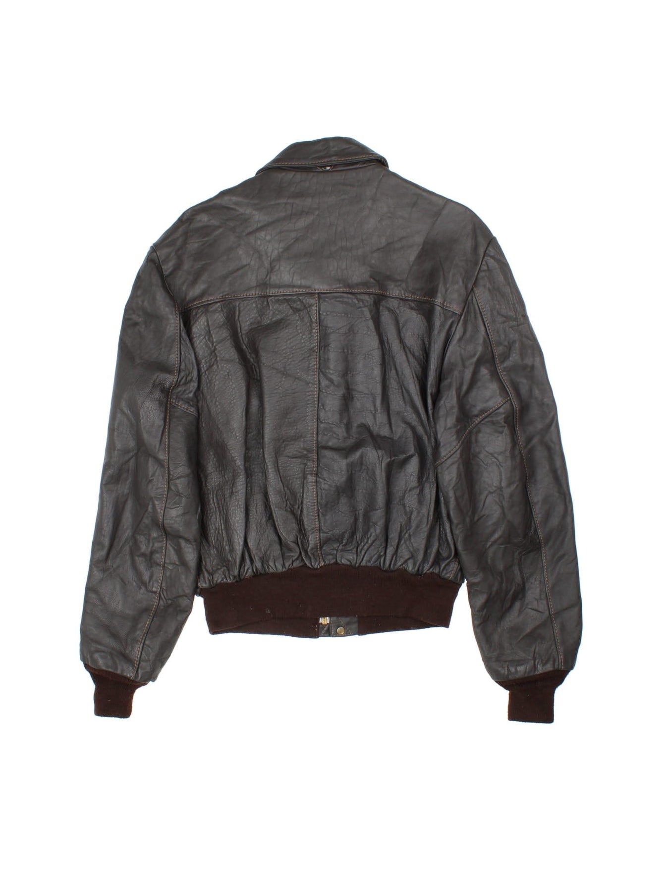 Vintage Schott Leather Bomber Jacket in a brown colourway. Full zip with double front button pocket and cuffed hem..