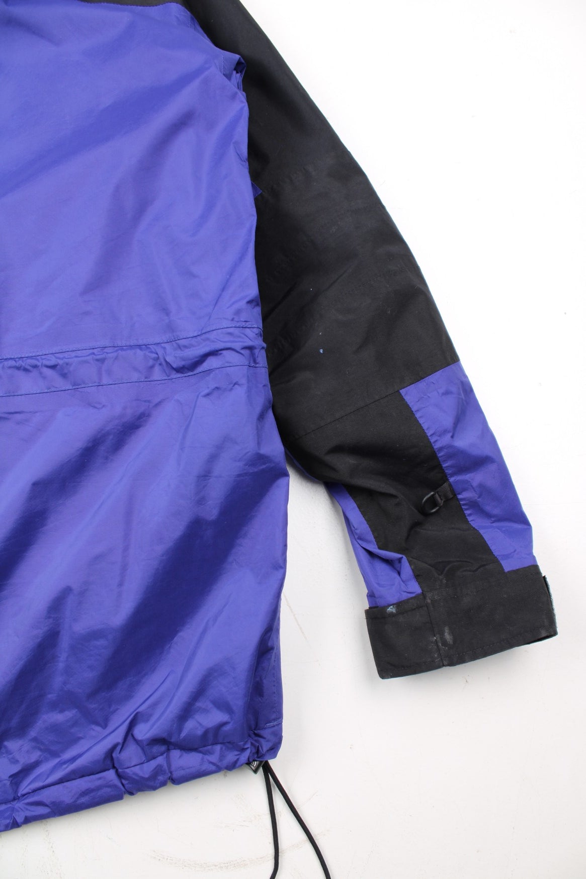 Vintage The North Face Mountain Light Jacket in a purple and black colourway. Zips and buttons up, has side pockets, hooded, and has the logo embroidered on the left sleeve.