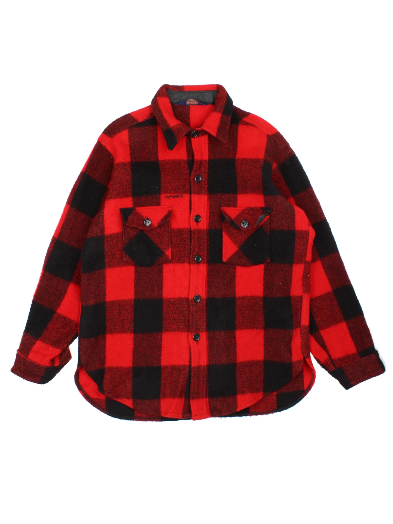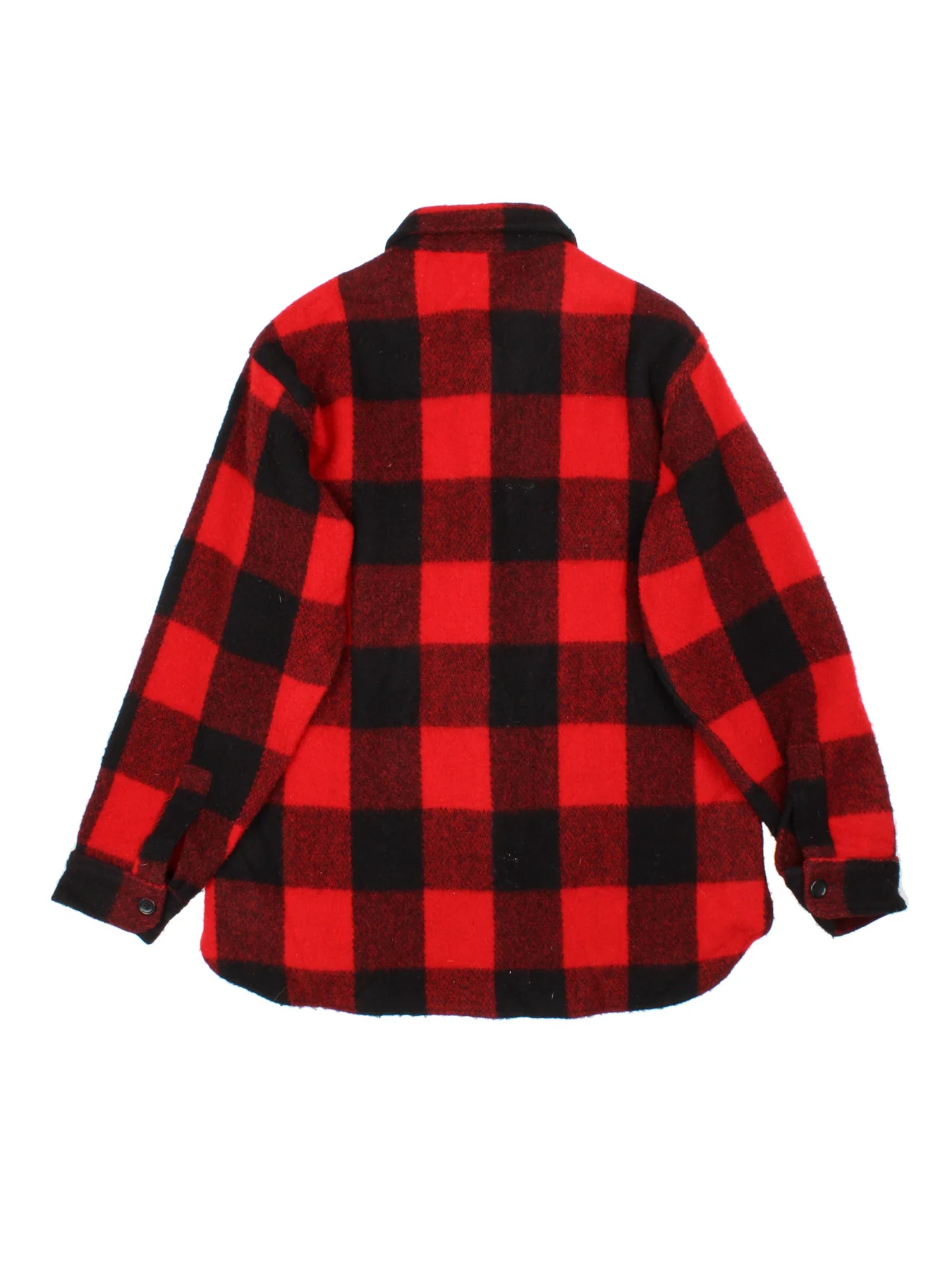 Woolrich CPO Jacket in a red and black colourway with full button up and multiple pockets. All over plaid patterning.