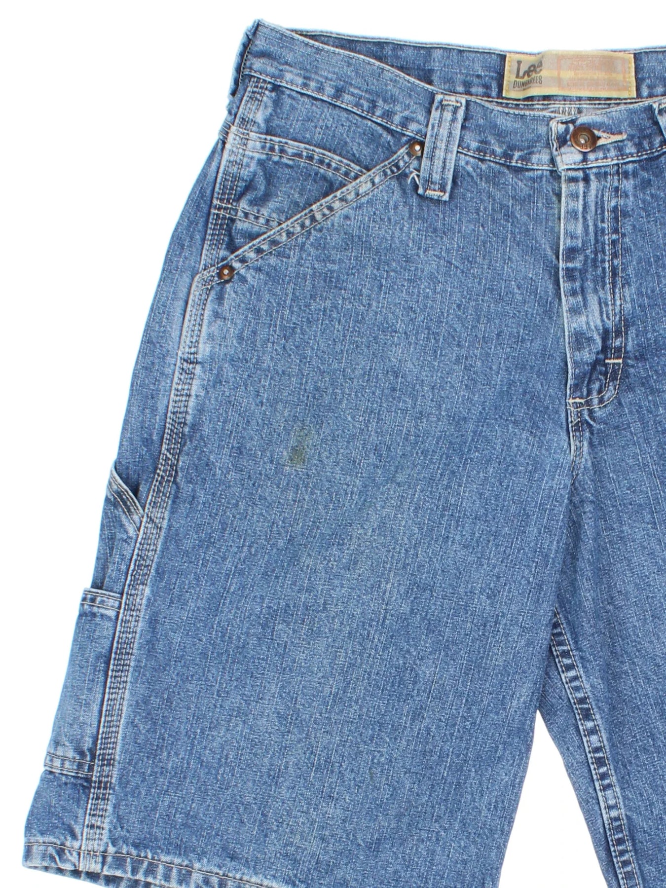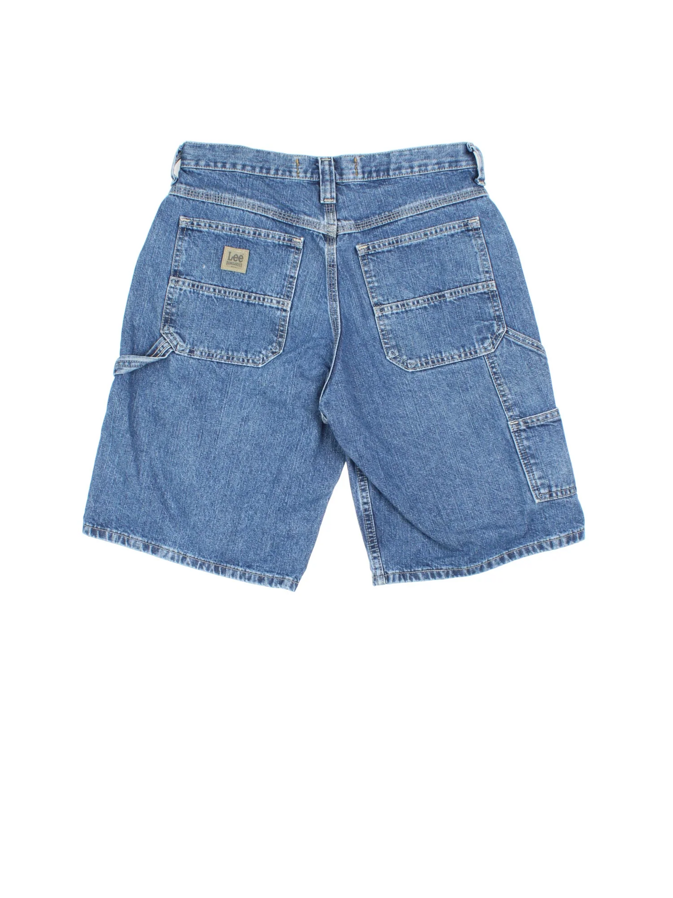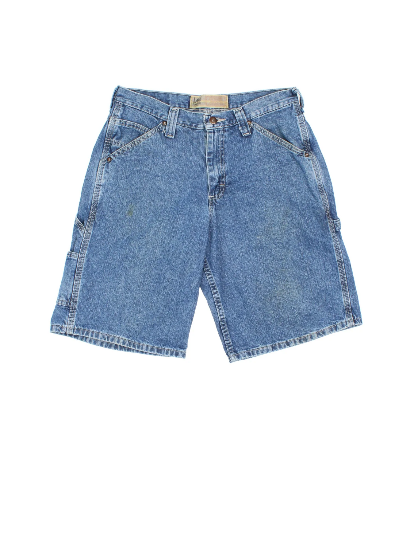Vintage Lee Denim Shorts in blue colourway with zip fly fastening, multiple pockets and embroidered logo on back pocket.