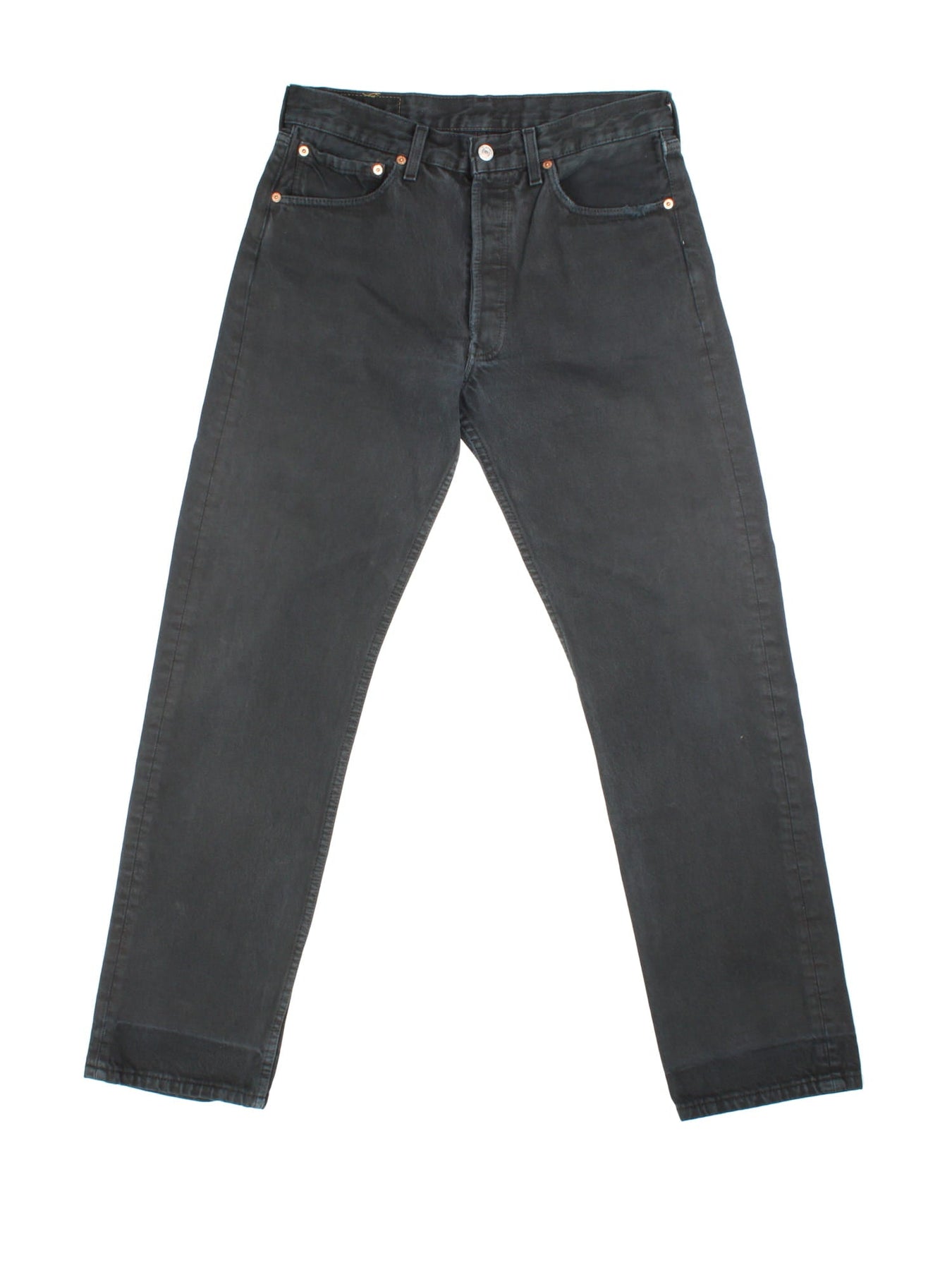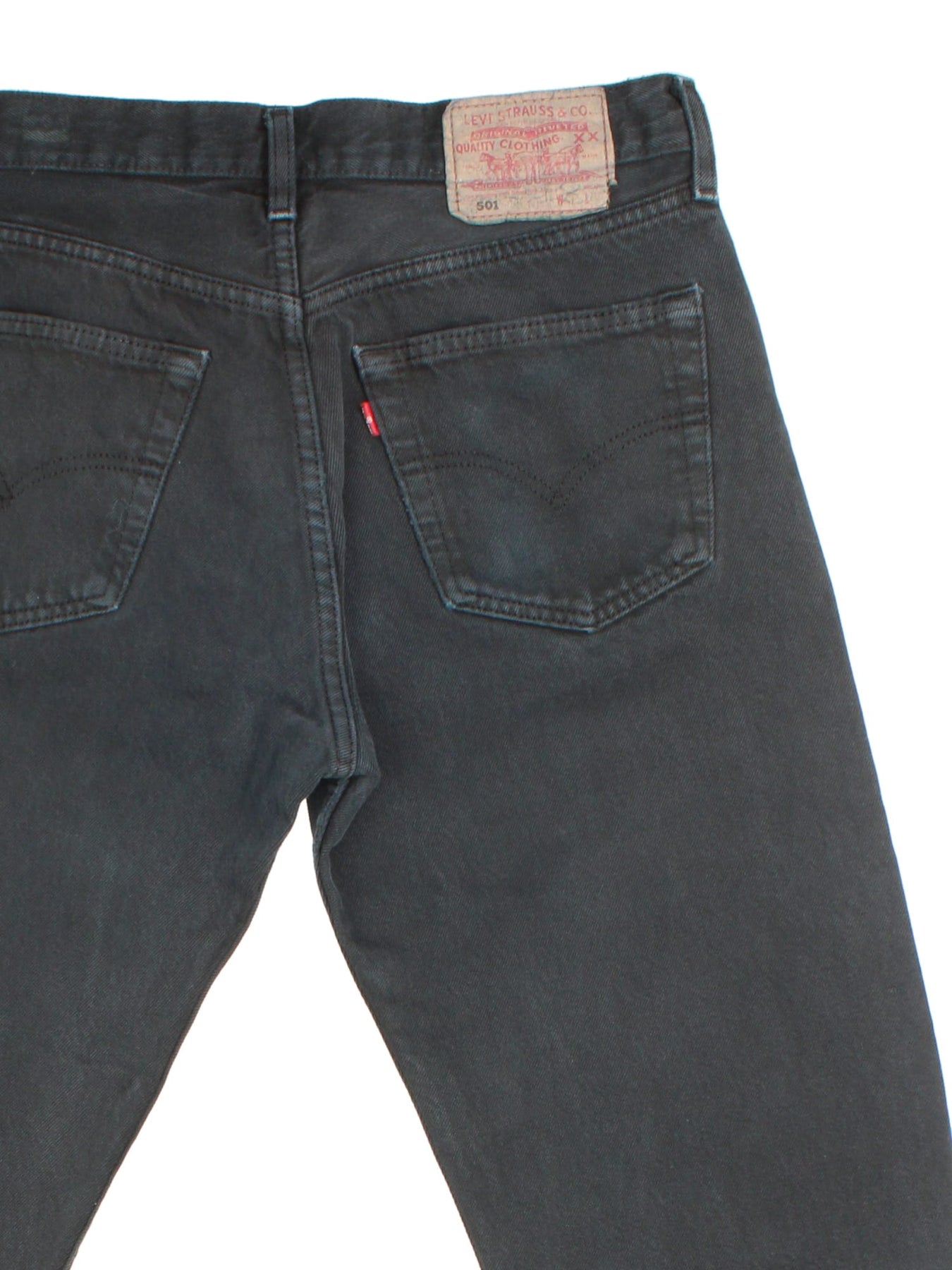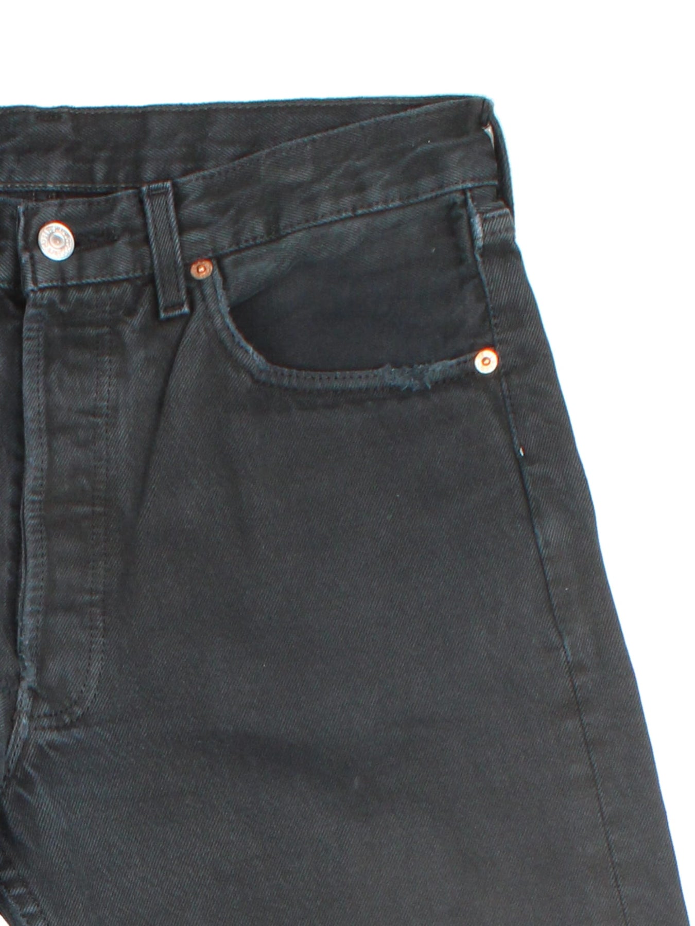 Levi Strauss 501 Jeans in black colourway with multiple pockets and the logo tab embroidered on the back.