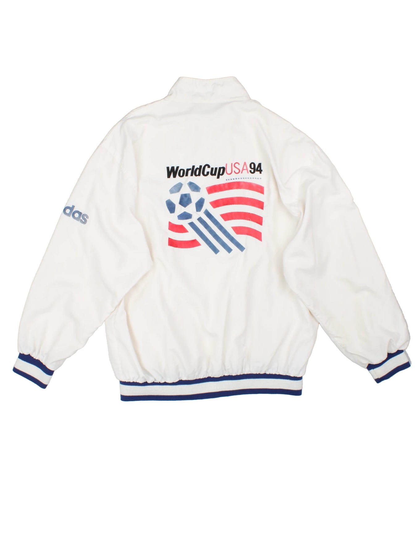 World Cup USA 94 Tracksuit Top by adidas in white with embroidered spell-out and graphic on front back and sleeve
