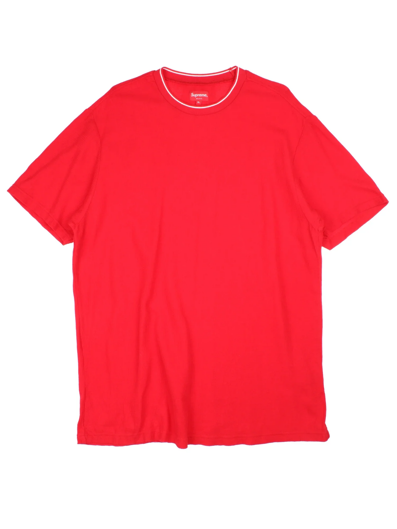 Supreme New York Waffle T-Shirt in a red colourway with contrast white piping and branding printed on the back.