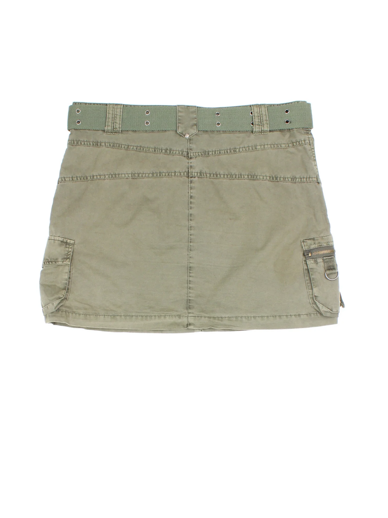 Vintage Y2K Cargo Mini Skirt in green colourway with multiple pockets, zip/button fastening and detachable military belt.