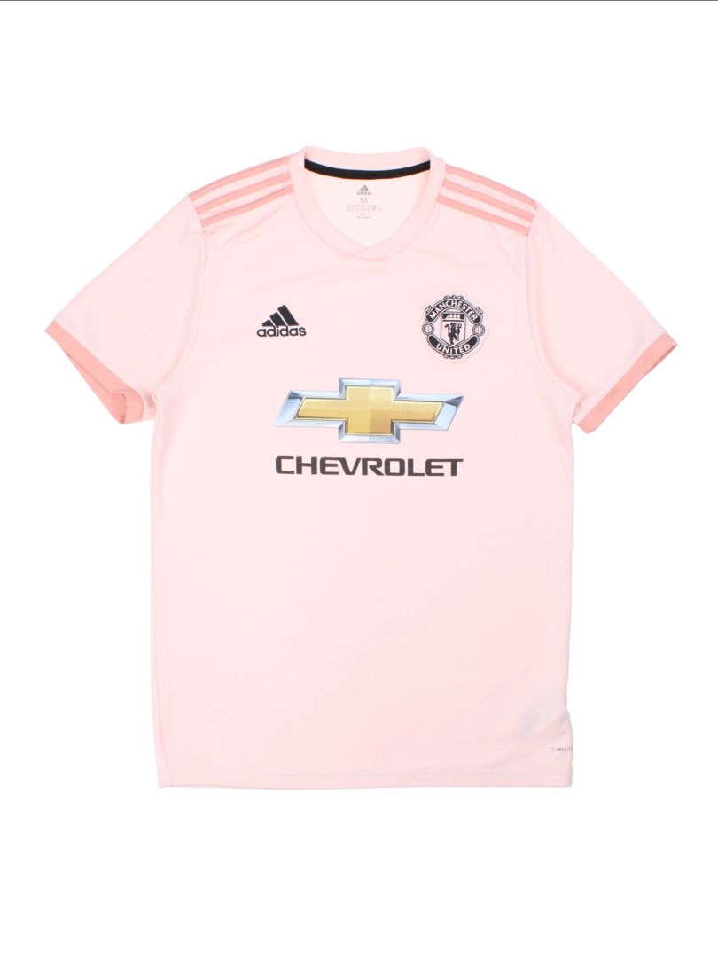 Elevate your football wardrobe with the official Manchester United Adidas Climalite Pink Away Football Shirt, the iconic 2018/19 season kit. Crafted by Adidas using lightweight Climalite fabric, this shirt ensures superior moisture-wicking and cooling comfort for active wear, perfect for football matches, training sessions, or casual fan support. The light pink colourway with signature Adidas stripes and the classic Manchester United crest showcases sporting pride, further accentuated by Chevrolet front sponsorship. A must-have for any dedicated supporter, this shirt guarantees style, authenticity, and exceptional performance, making it an essential addition for collectors and fans alike.