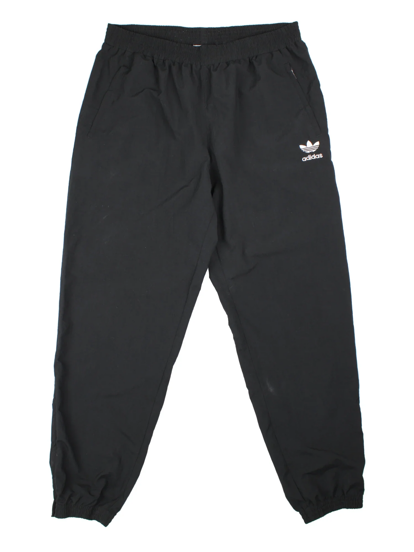 90's Adidas Tracksuit Bottoms in black colourway. Side pockets, elasticated waist and the logo embroidered on the front.