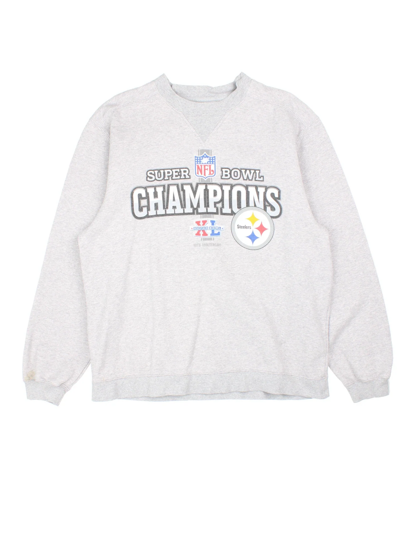 Pittsburgh Steelers NFL Superbowl Champions Sweatshirt in a grey colourway with the logo and graphic printed on front.