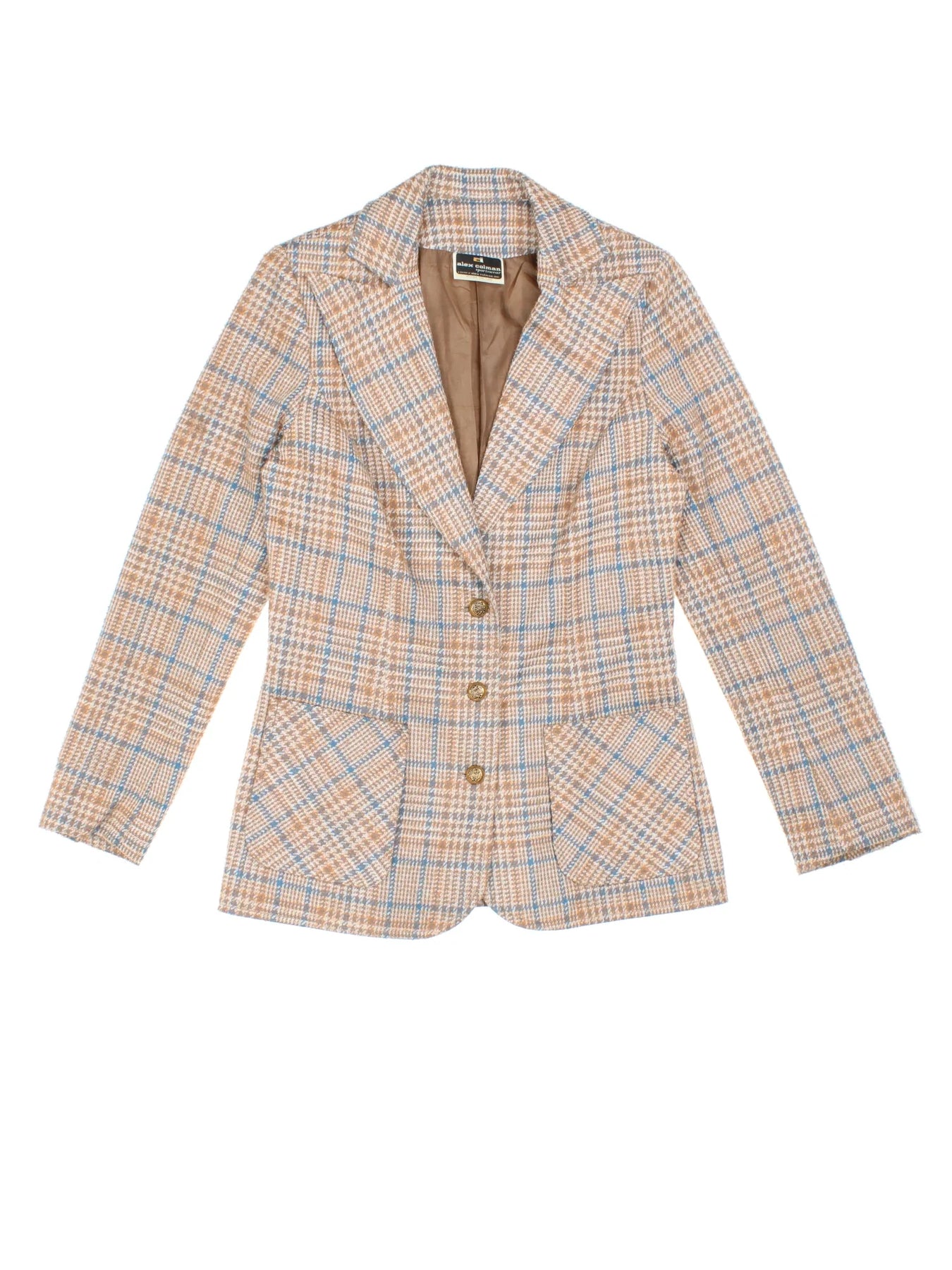 Vintage 80's Alex Colman Wool Blazer in a tan colourway. Buttons up and has front patch pockets, fully lined.