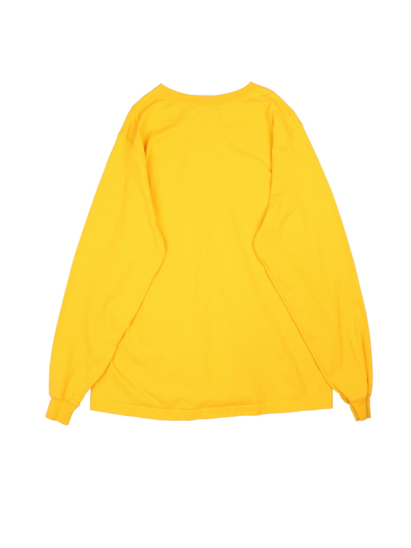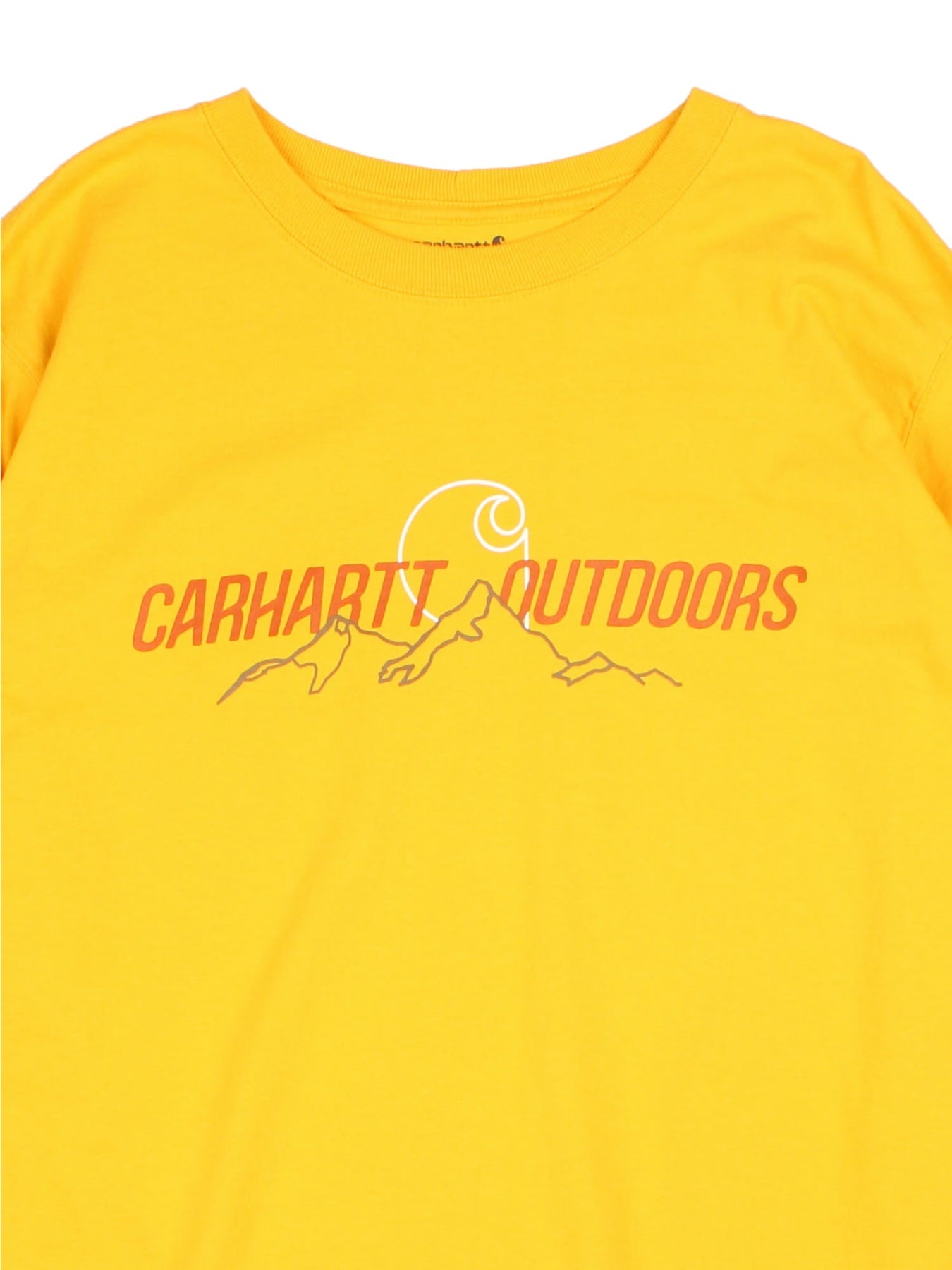 Carhartt Outdoors Long Sleeve T-Shirt in a yellow colourway with the spell out logo printed across the front.