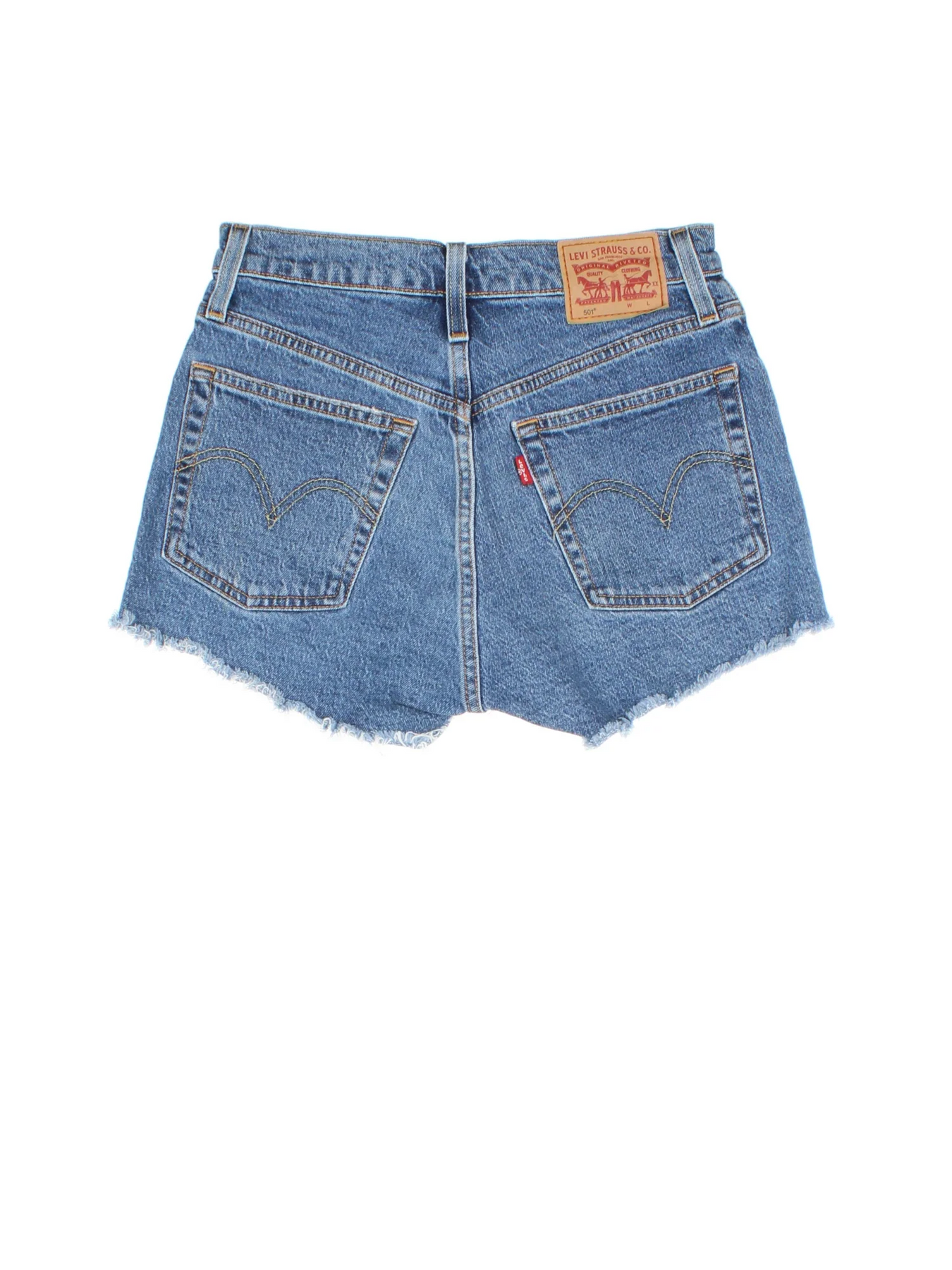 Vintage Levi Strauss shorts in blue colourway with multiple pockets, frayed hem and the logo embroidered on the back.