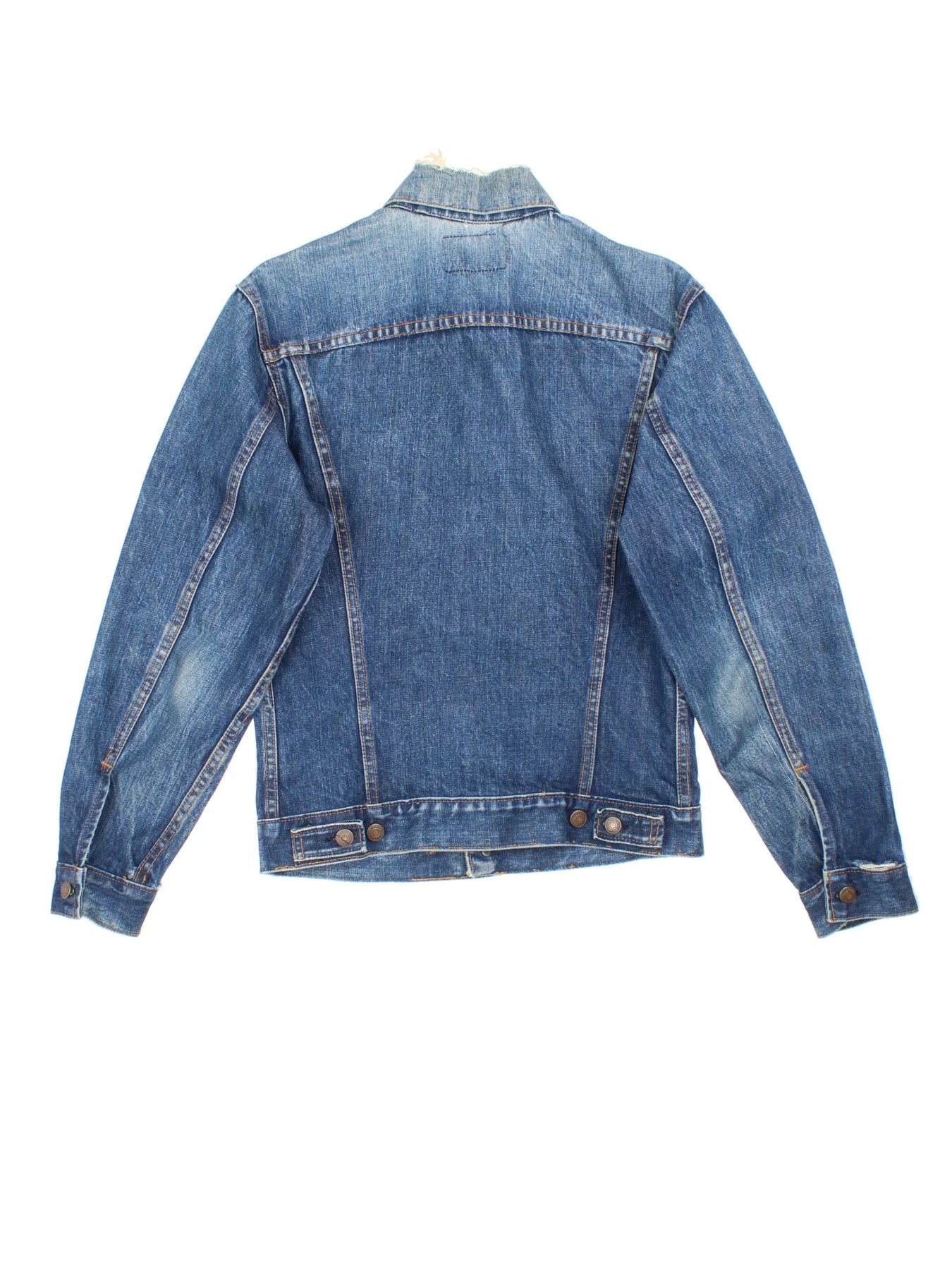 Vintage Levi Strauss Denim Jacket in a blue colourway. Buttons up and has double chest pockets, and the logo tab embroidered on the front.