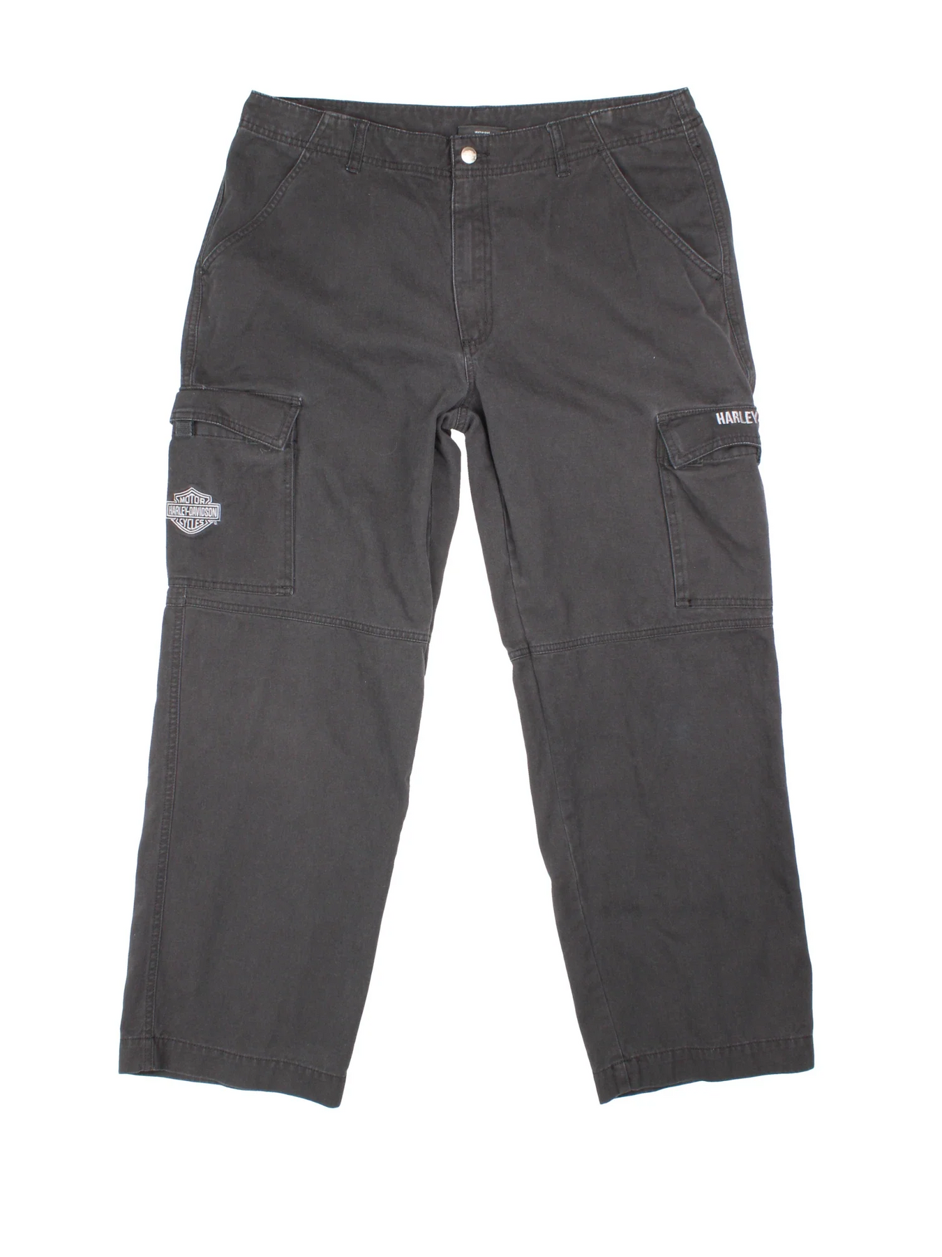 Harley-Davidson Cargo Trousers in black colourway with zip fly fastening and the logo embroidered on side pockets.