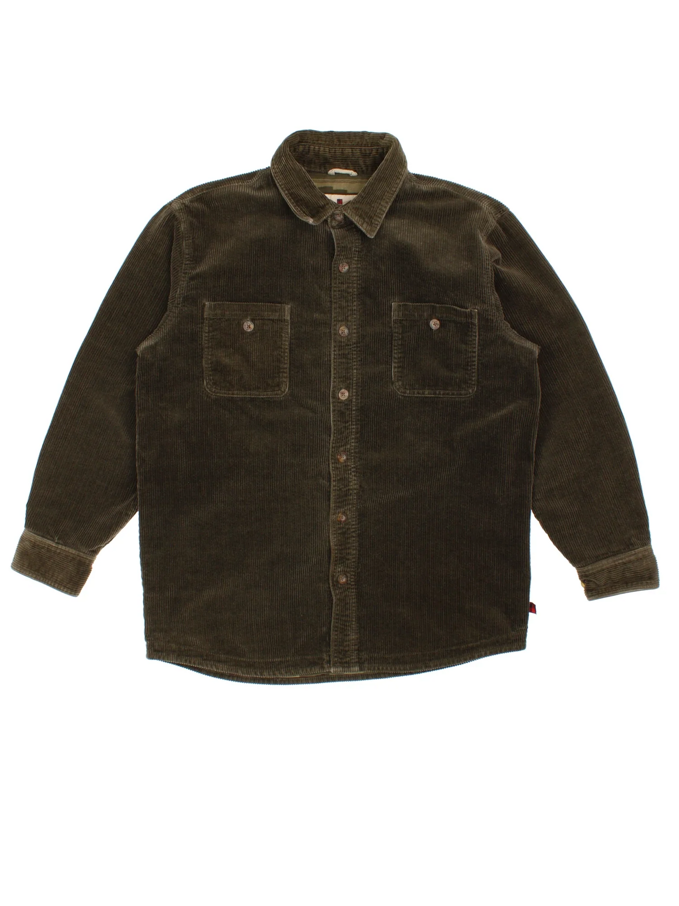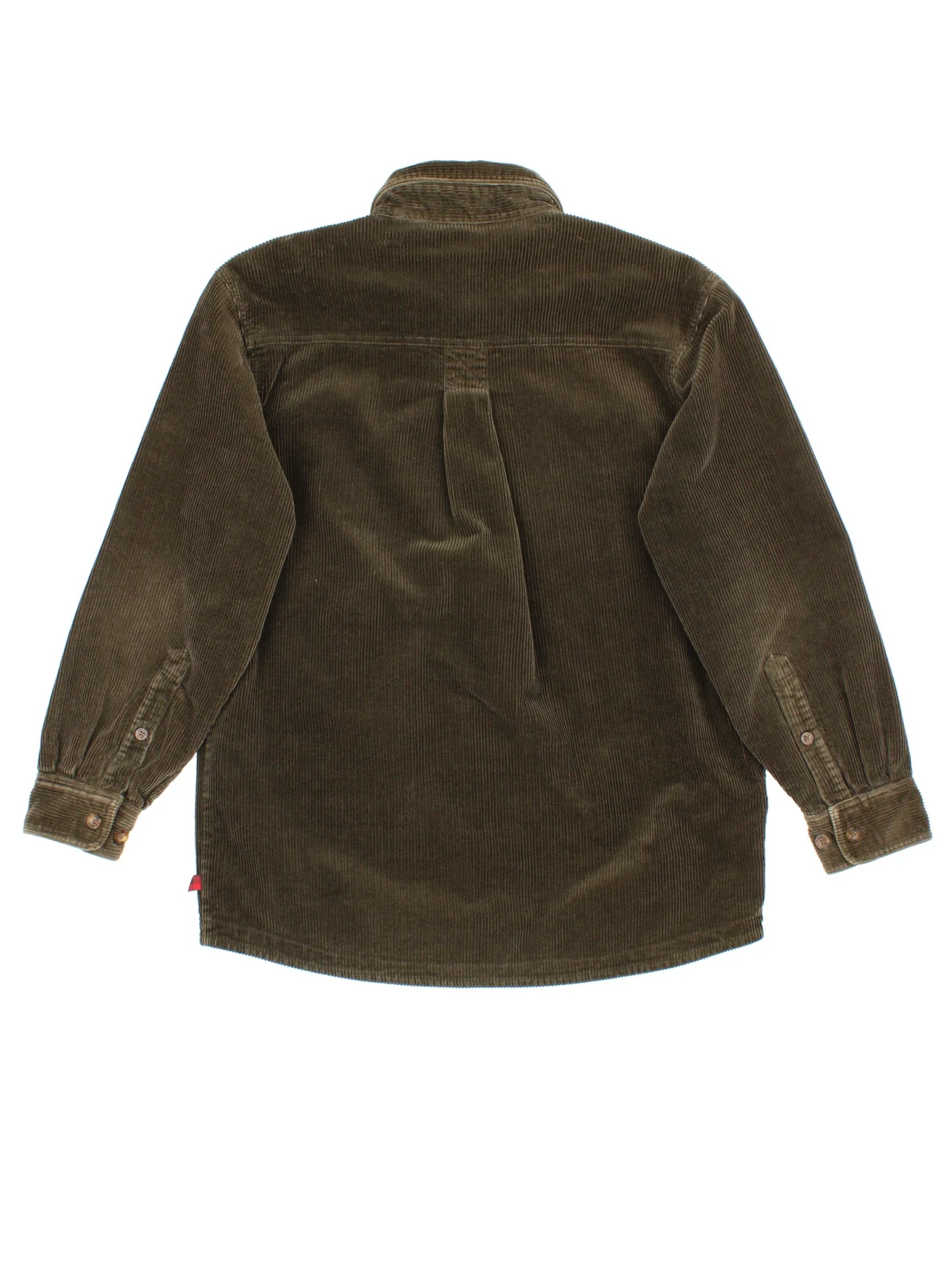 Woolrich Corduroy Shirt in a green colourway, aztec pattern lining, button up and has double chest pockets.