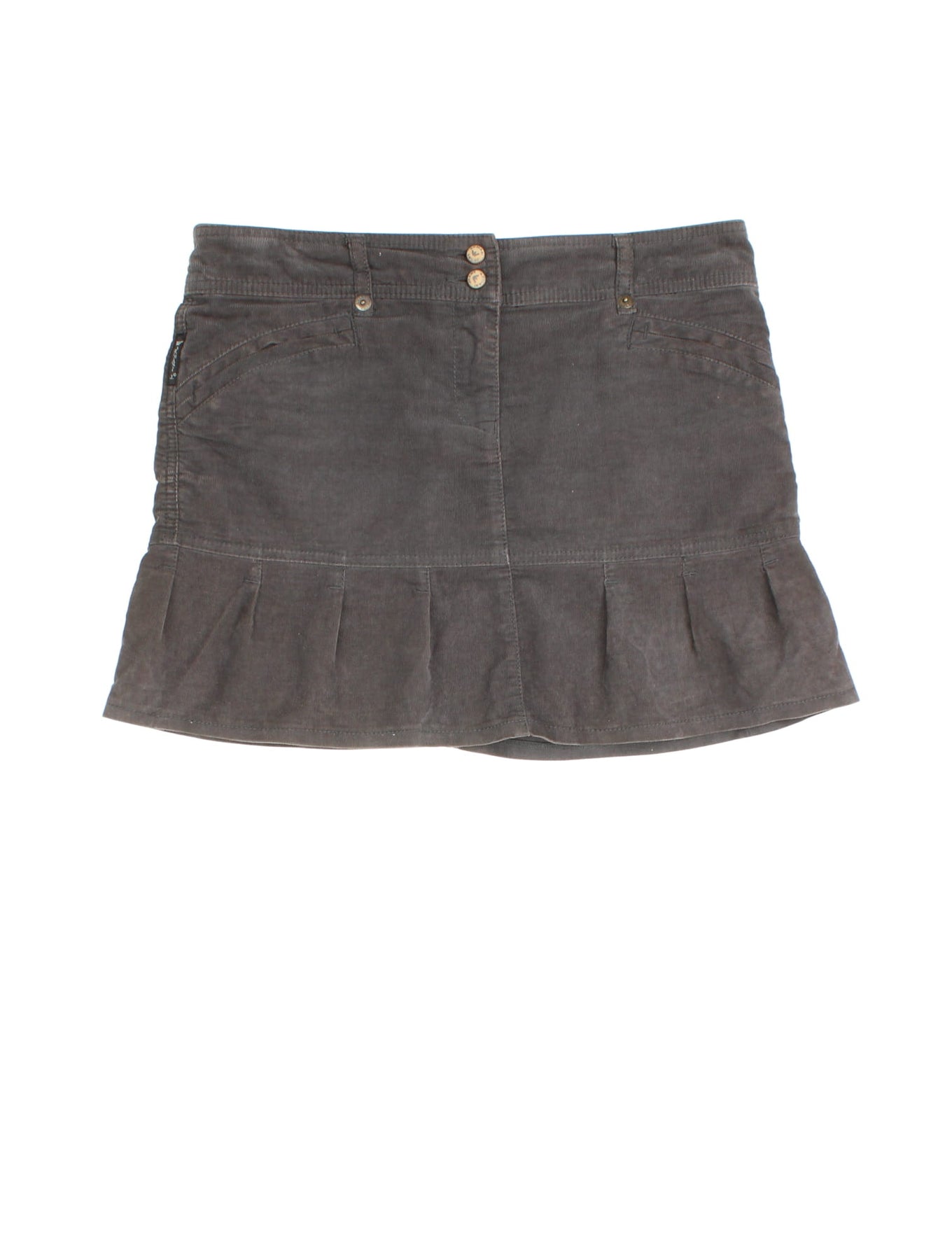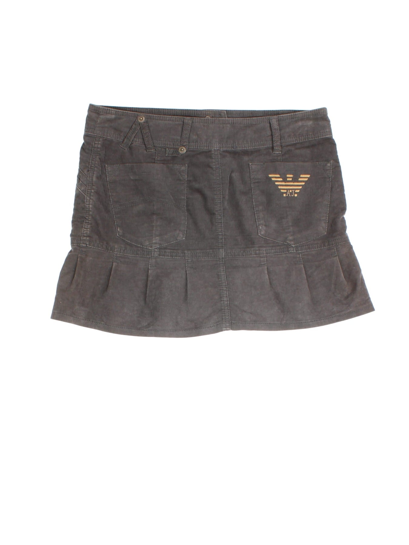 Y2K Armani Jeans Mini Skirt in a grey colourway with zip button fastening and embroidered branding on back pocket.