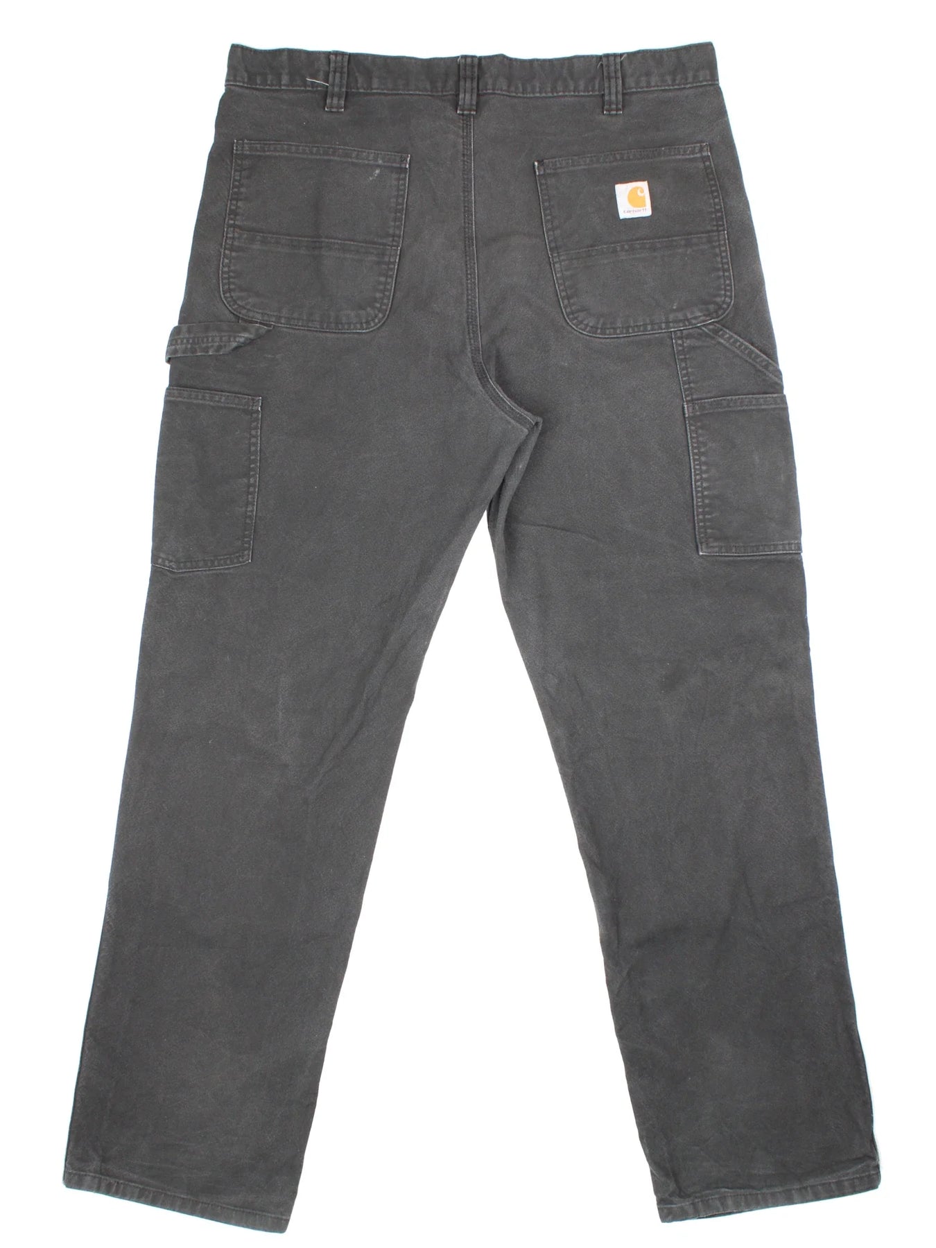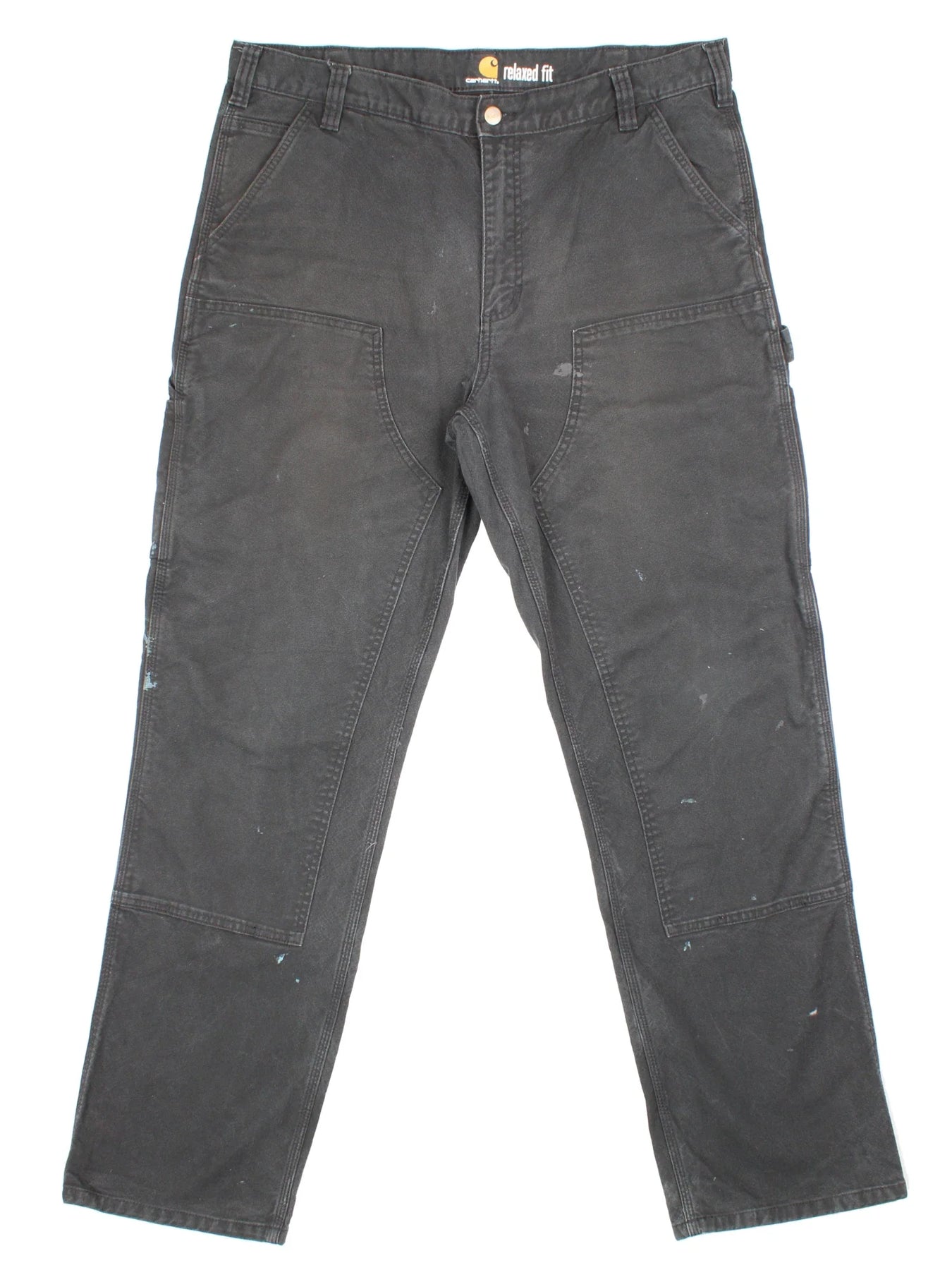 Carhartt Double Knee Jeans in a black colourway with multiple pockets and the logo embroidered on the back.