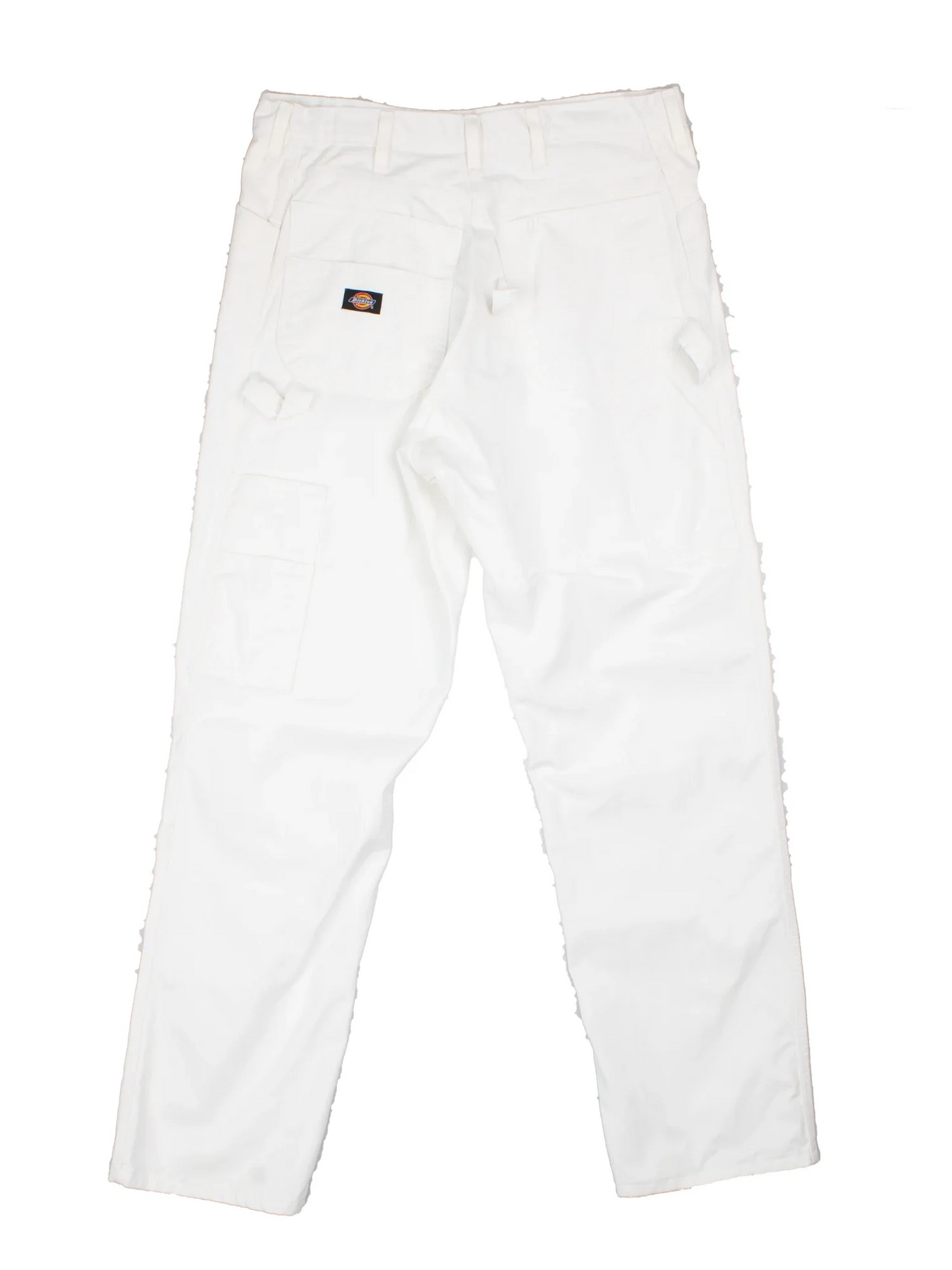 Dickies Carpenter Trousers in white colourway with multiple pockets and branding on the back.