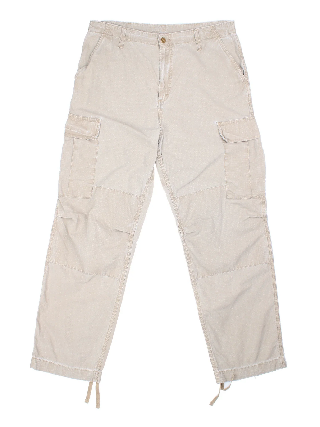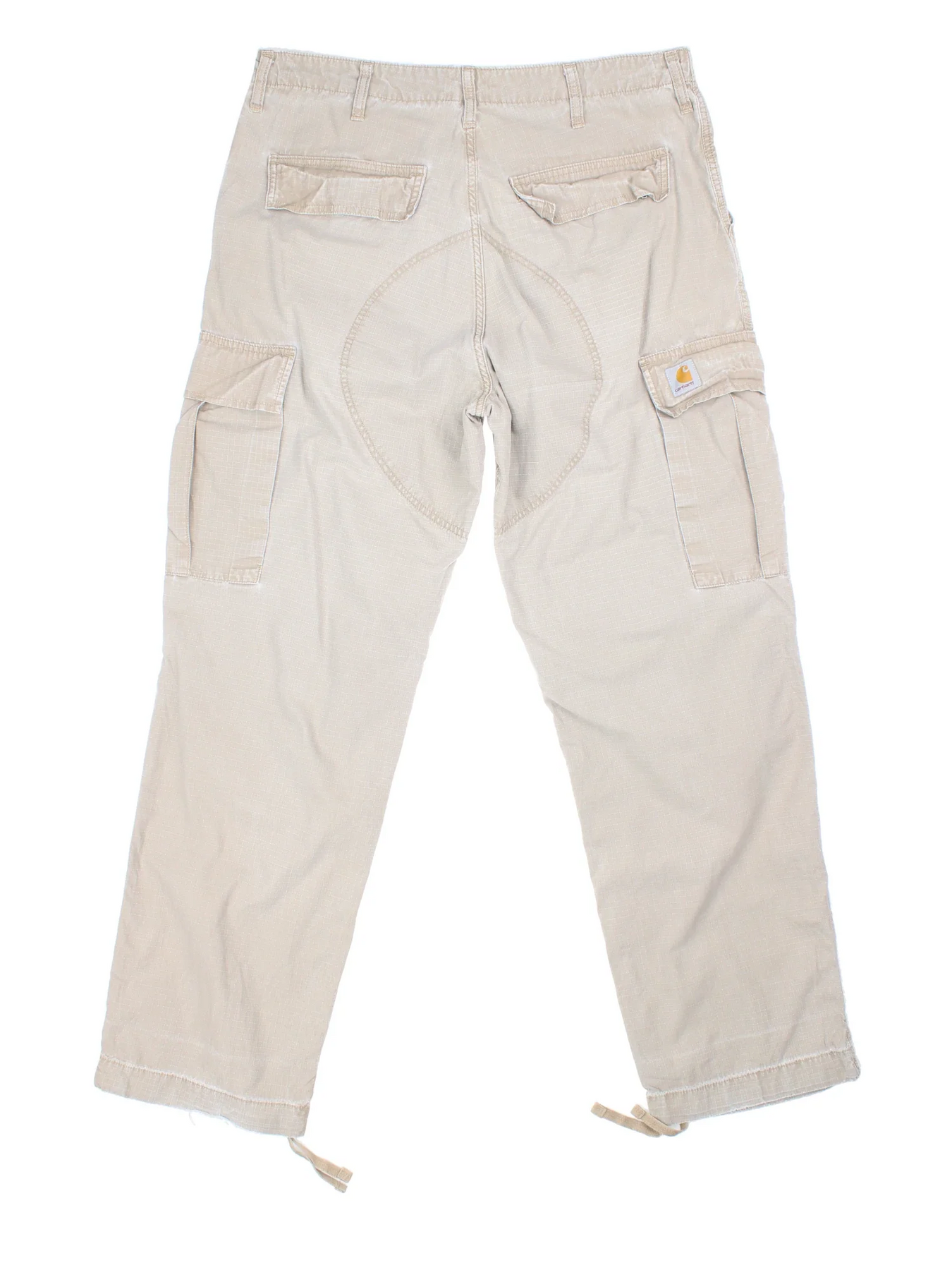 Carhartt Cargo Trousers in a tan colourway with multiple pockets and the logo embroidered on the back.